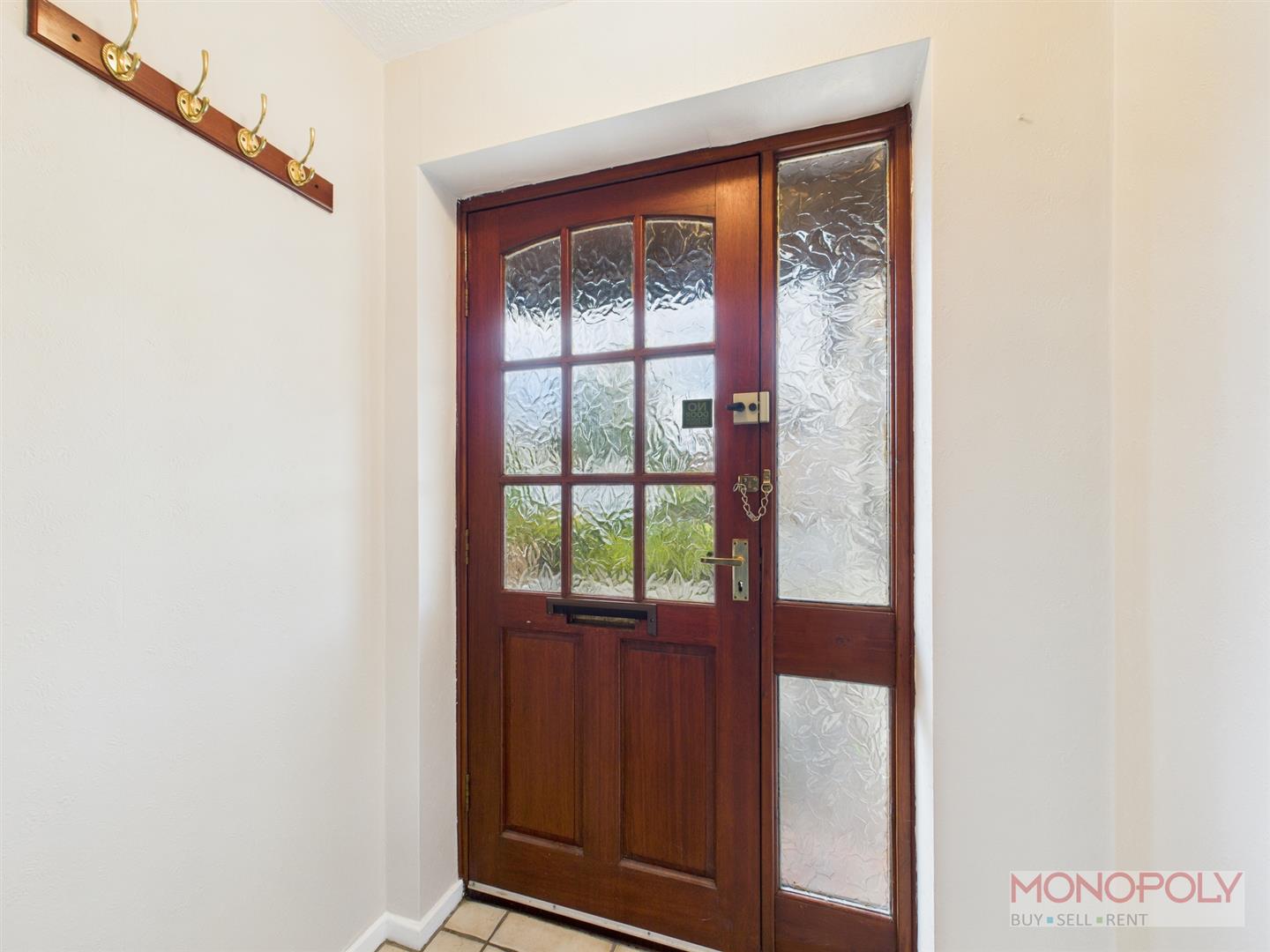 Paved path leads to timber panelled front door which provides access to entrance porch with ceramic tiled floor. Internal glazed doors lead to the reception hall.