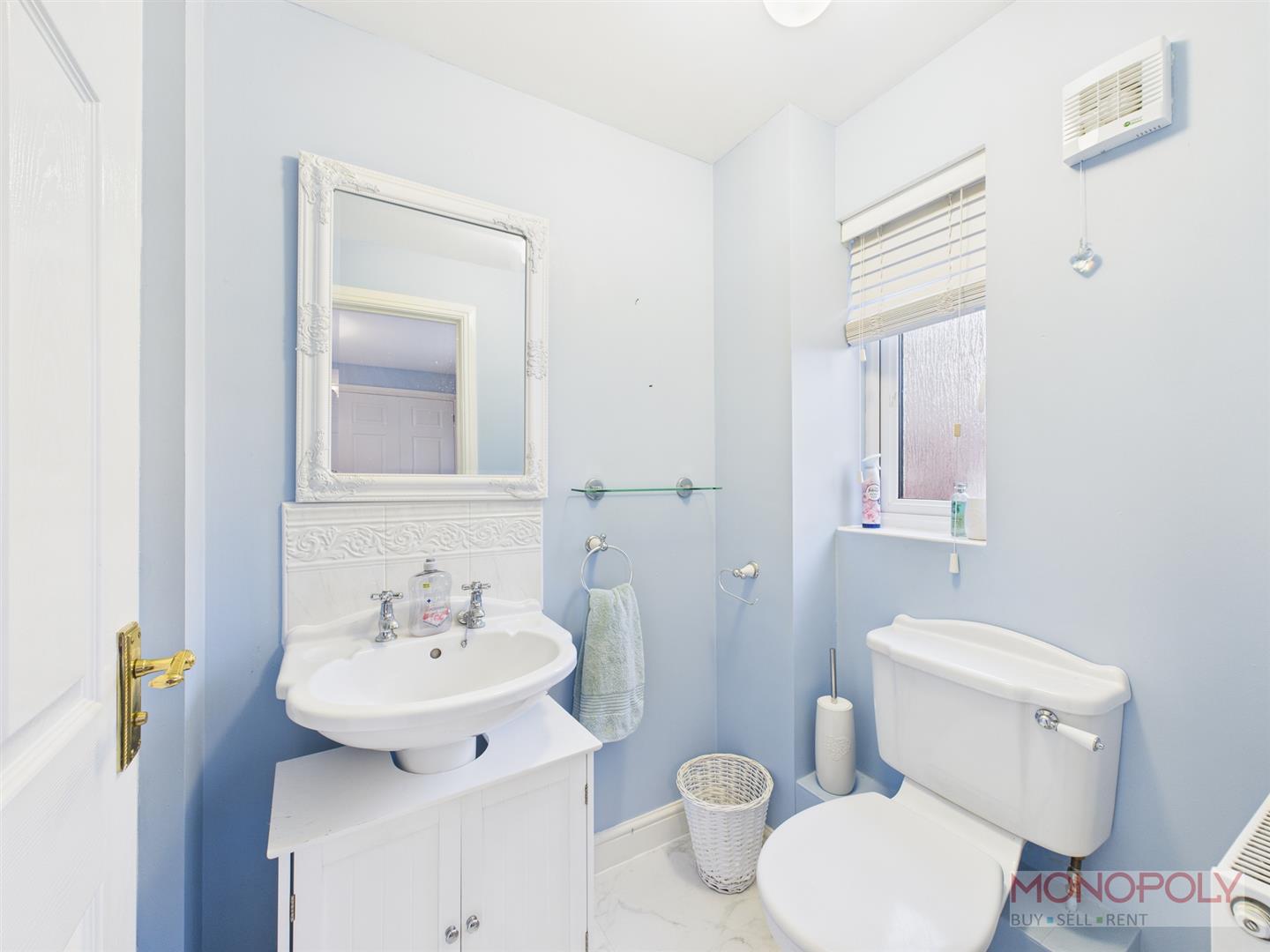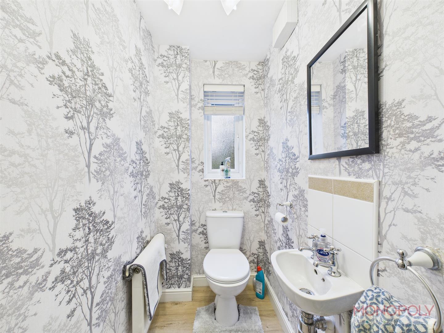 Two piece suite comprising low level w.c and wash hand basin. Laminate flooring, radiator and uPVC Double glazed window to the side.