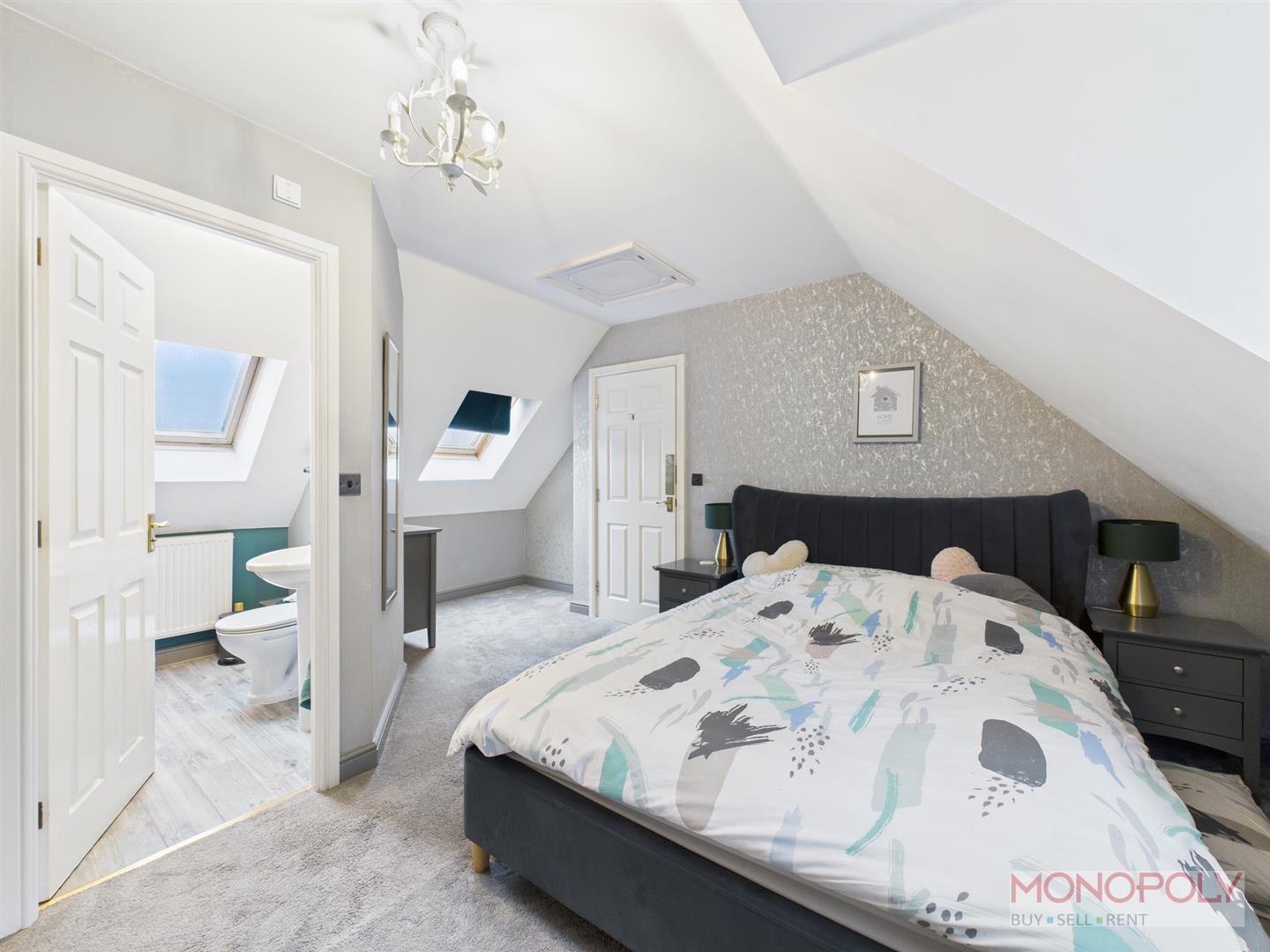 Featuring a skylight to the rear, UPVC Double glazed window to the front, radiator, carpet flooring and door into ensuite. Space to the side for dressing area.
