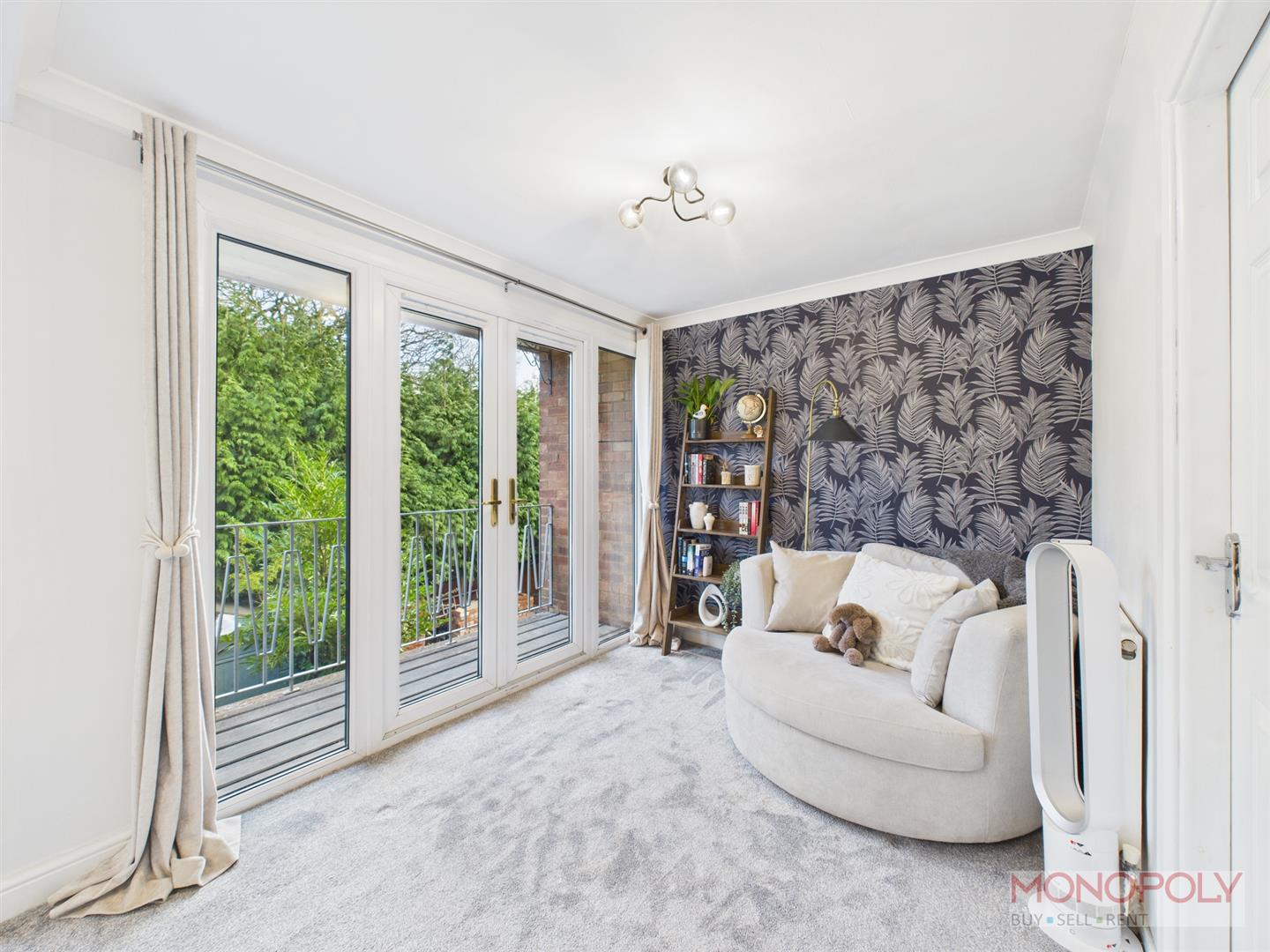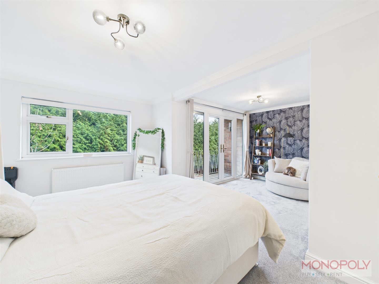 A pleasant bedroom with uPVC double glazed window to the rear elevation and additional uPVC double glazed French style doors onto a 'Juliet' balcony. with wall light. Additional area for seating, two ceiling light points, two panelled radiators and door into dressing room.