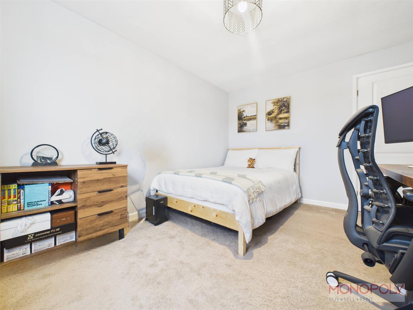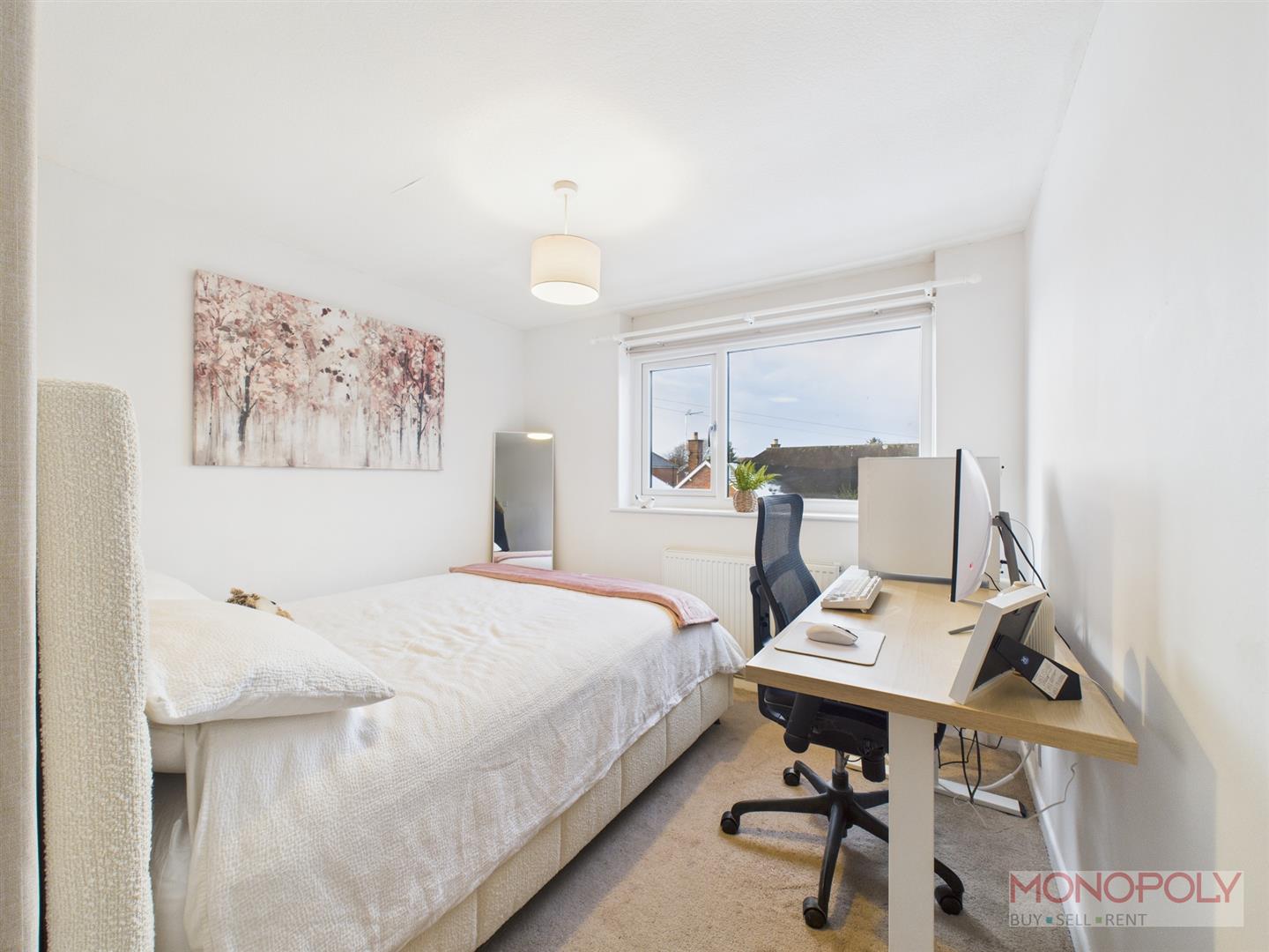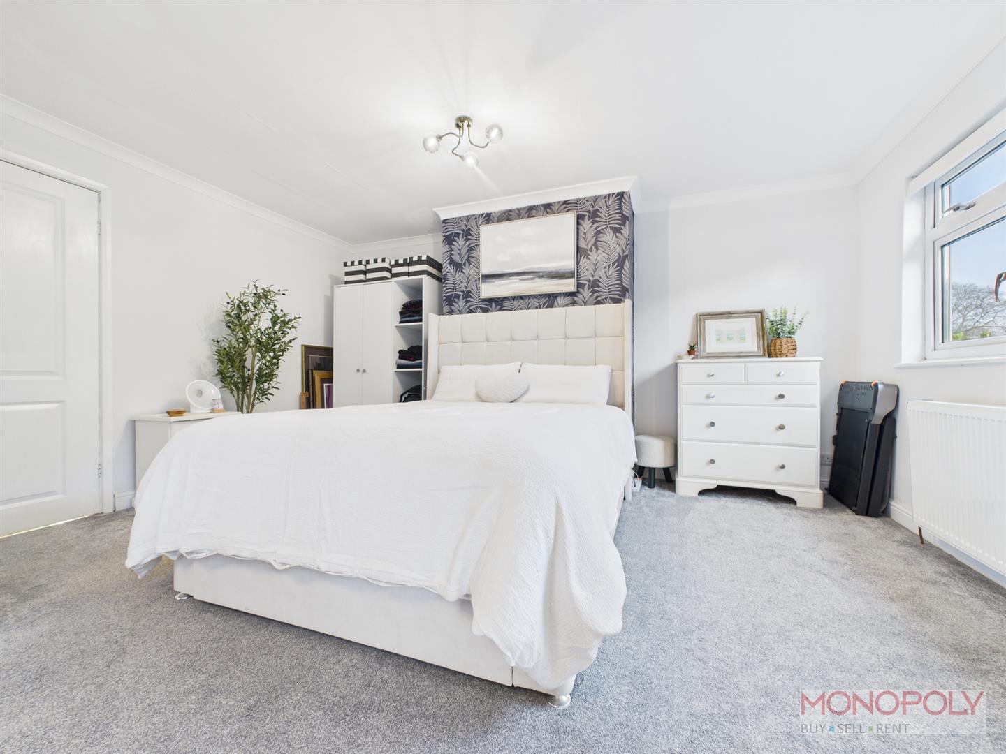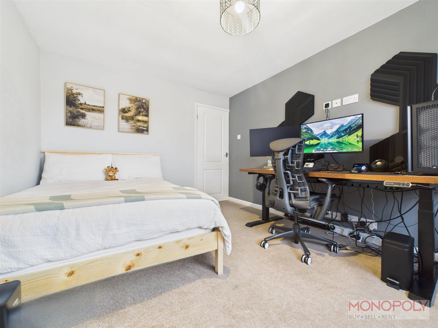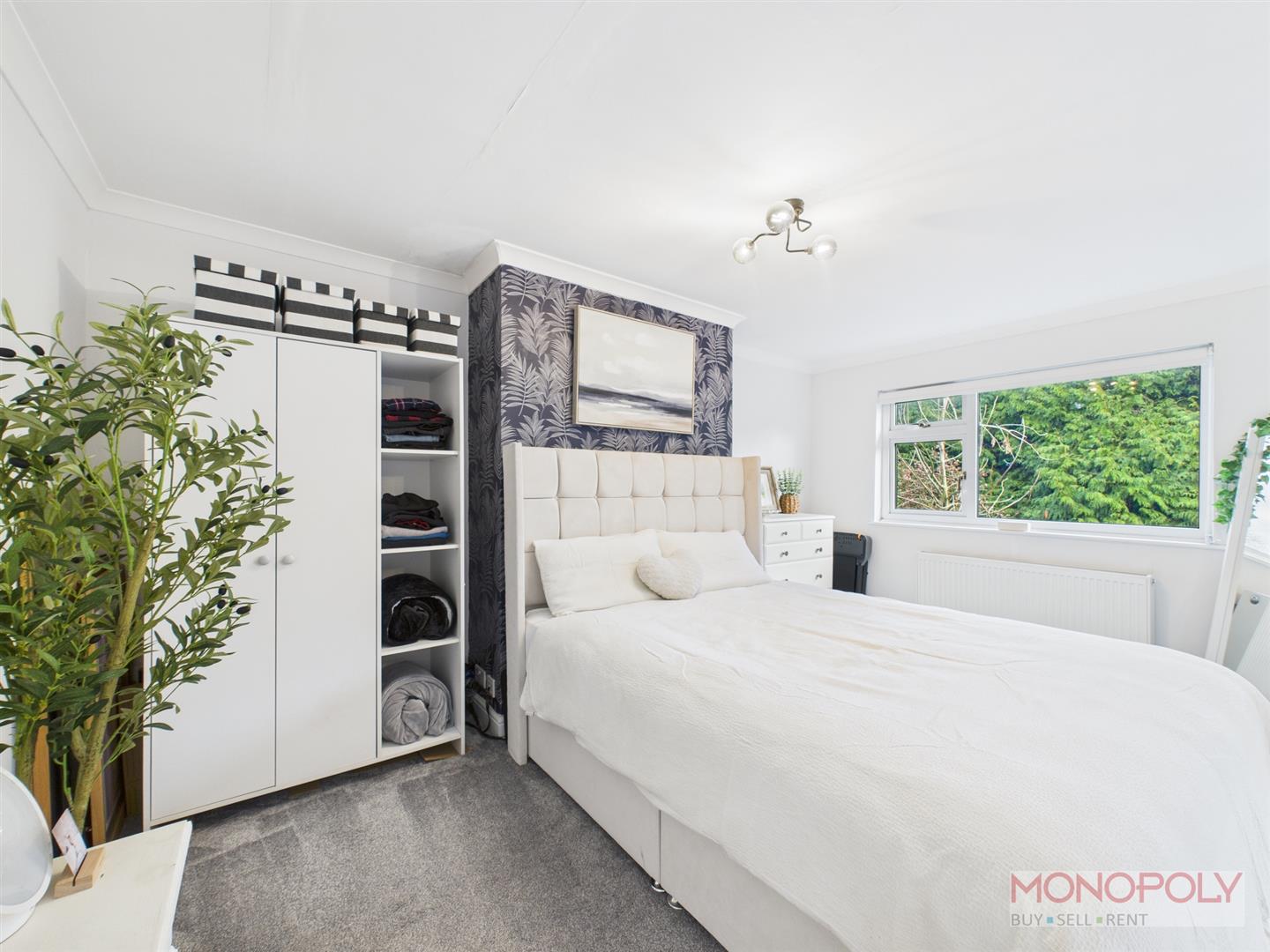 Double bedroom with uPVC double glazed window to the front elevation, carpet flooring, panelled radiator and ceiling light point.