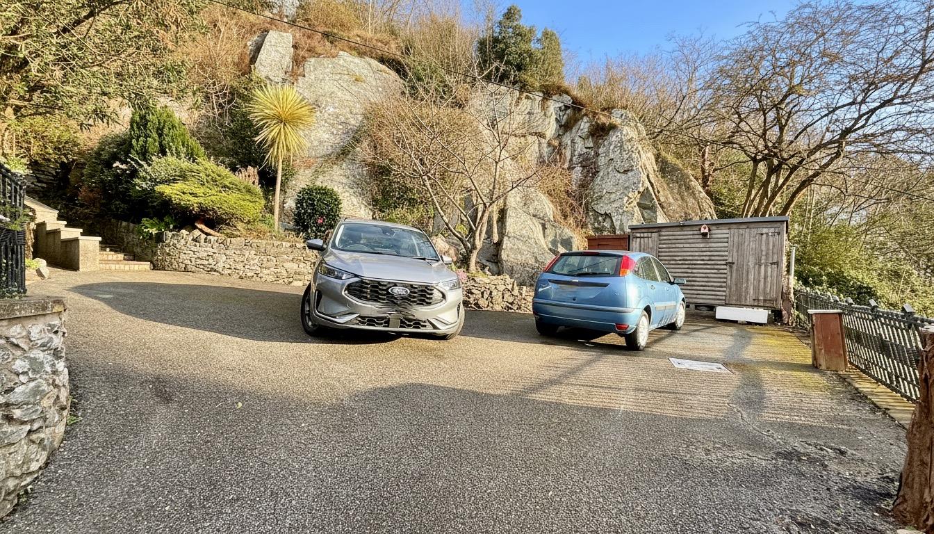 At the front of the property there is a shared tarmac driveway leading to a private parking area where there is parking for up to 3 to 4 cars.