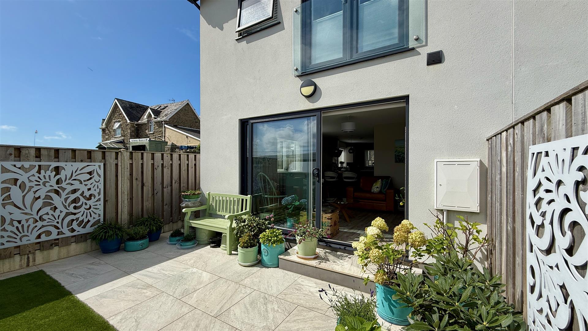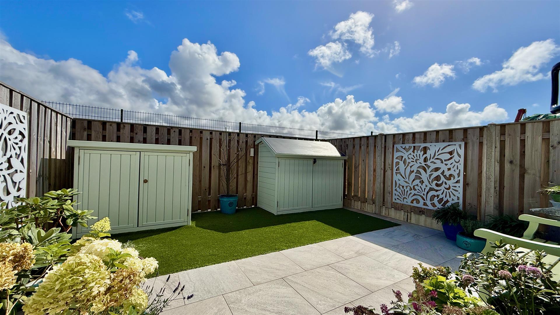 Patio doors from the lounge open to the low-maintenance garden, ideal for relaxing in the sun or hosting gatherings.