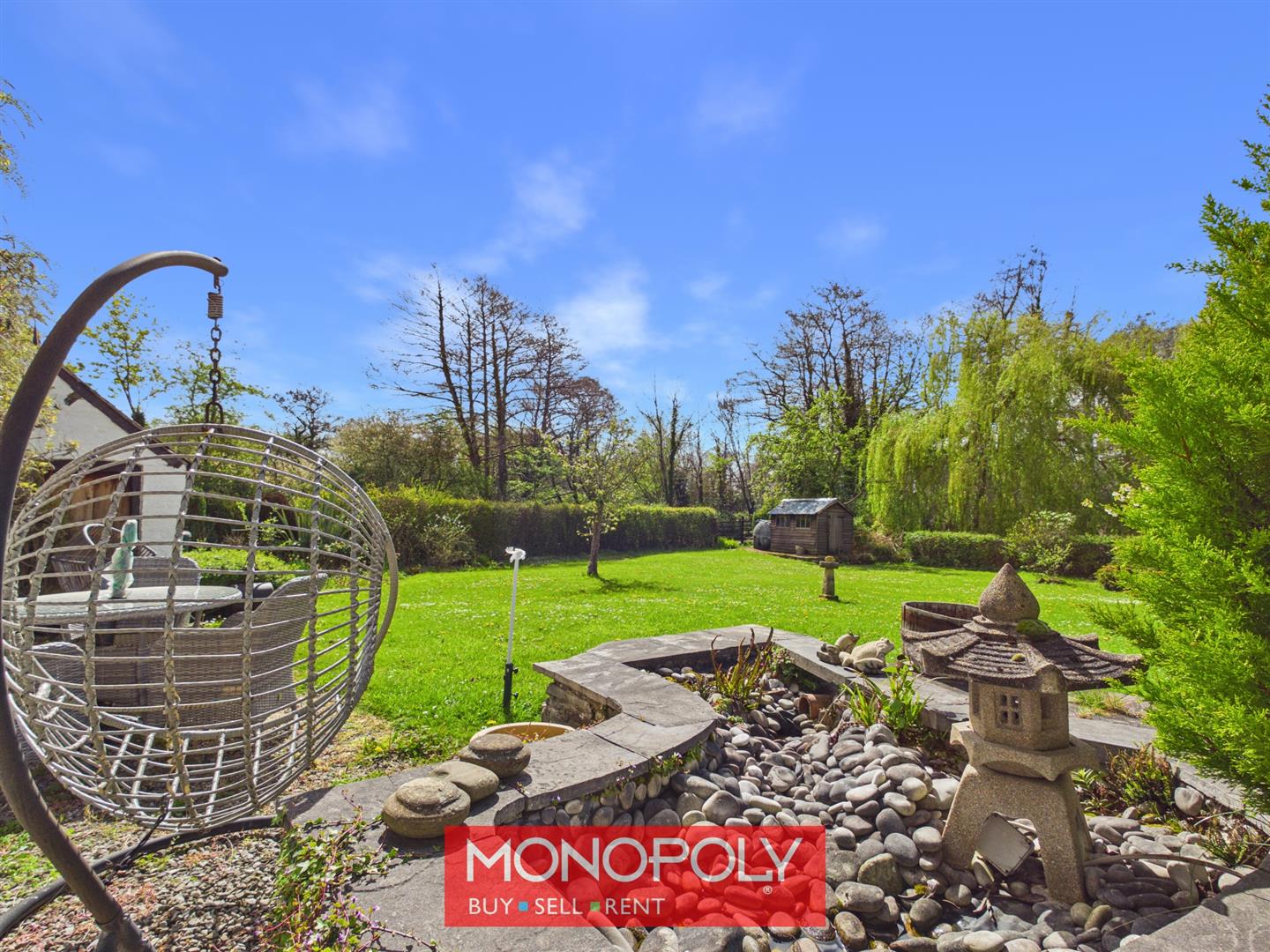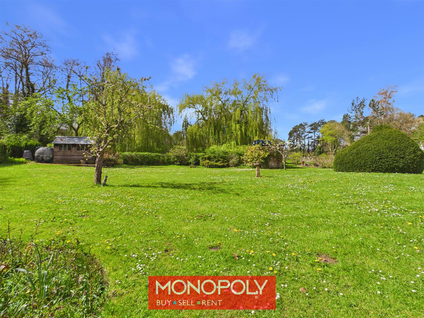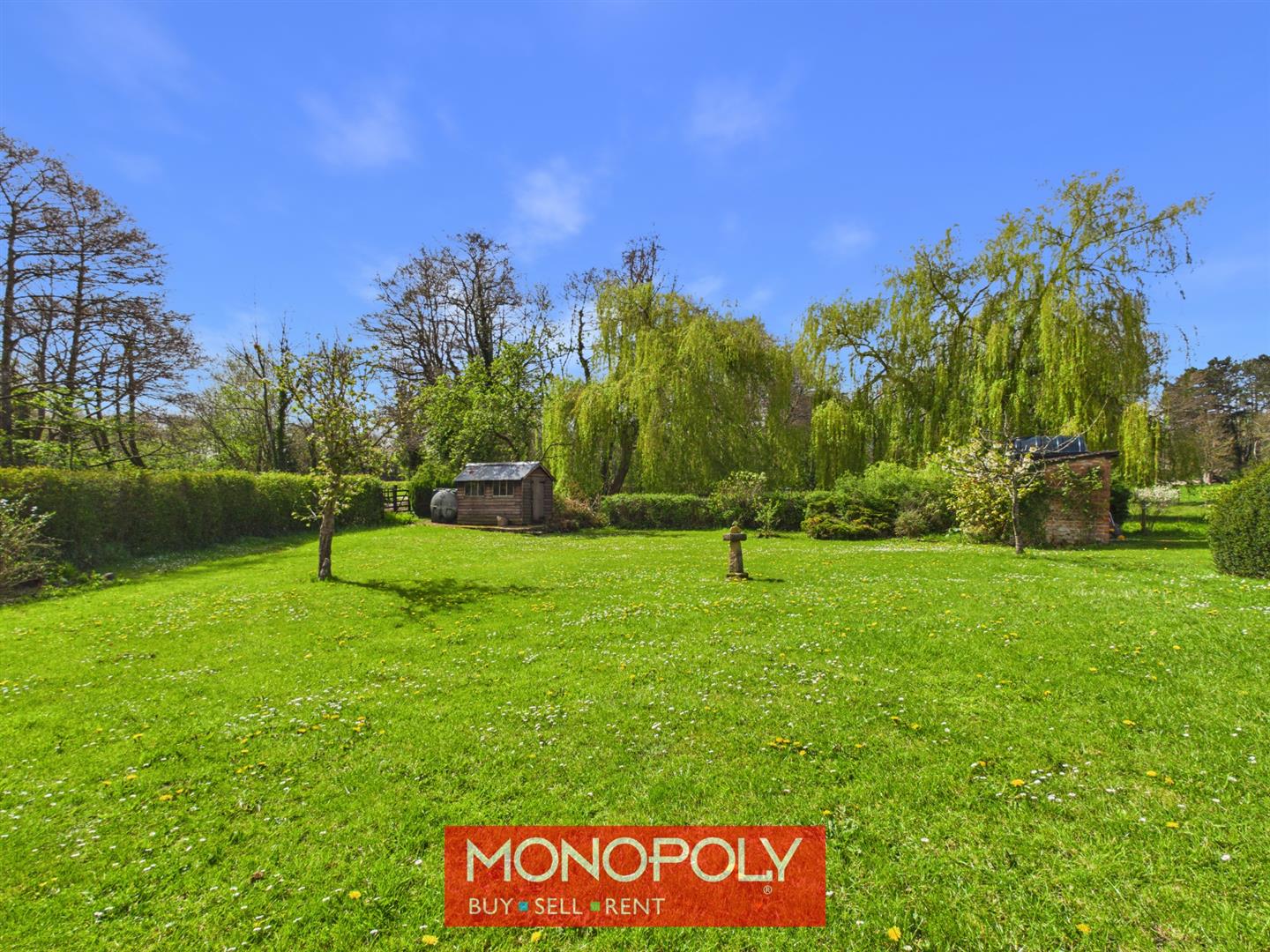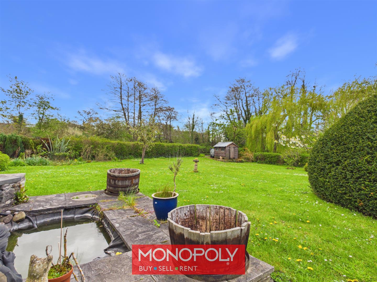 A wooden gate leads you to the rear, the south-facing garden is a true highlight, featuring lawns, mature borders, blossom trees and a man-made pond. Additional features include an outbuilding, outside WC, oil tank and concrete footings for a shed, all enjoying open views across the surrounding countryside.
