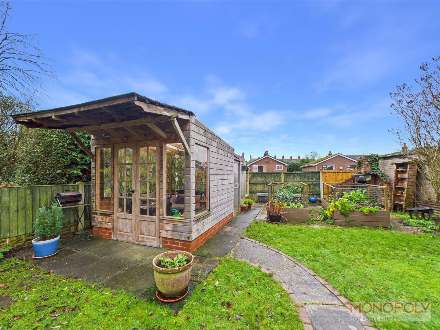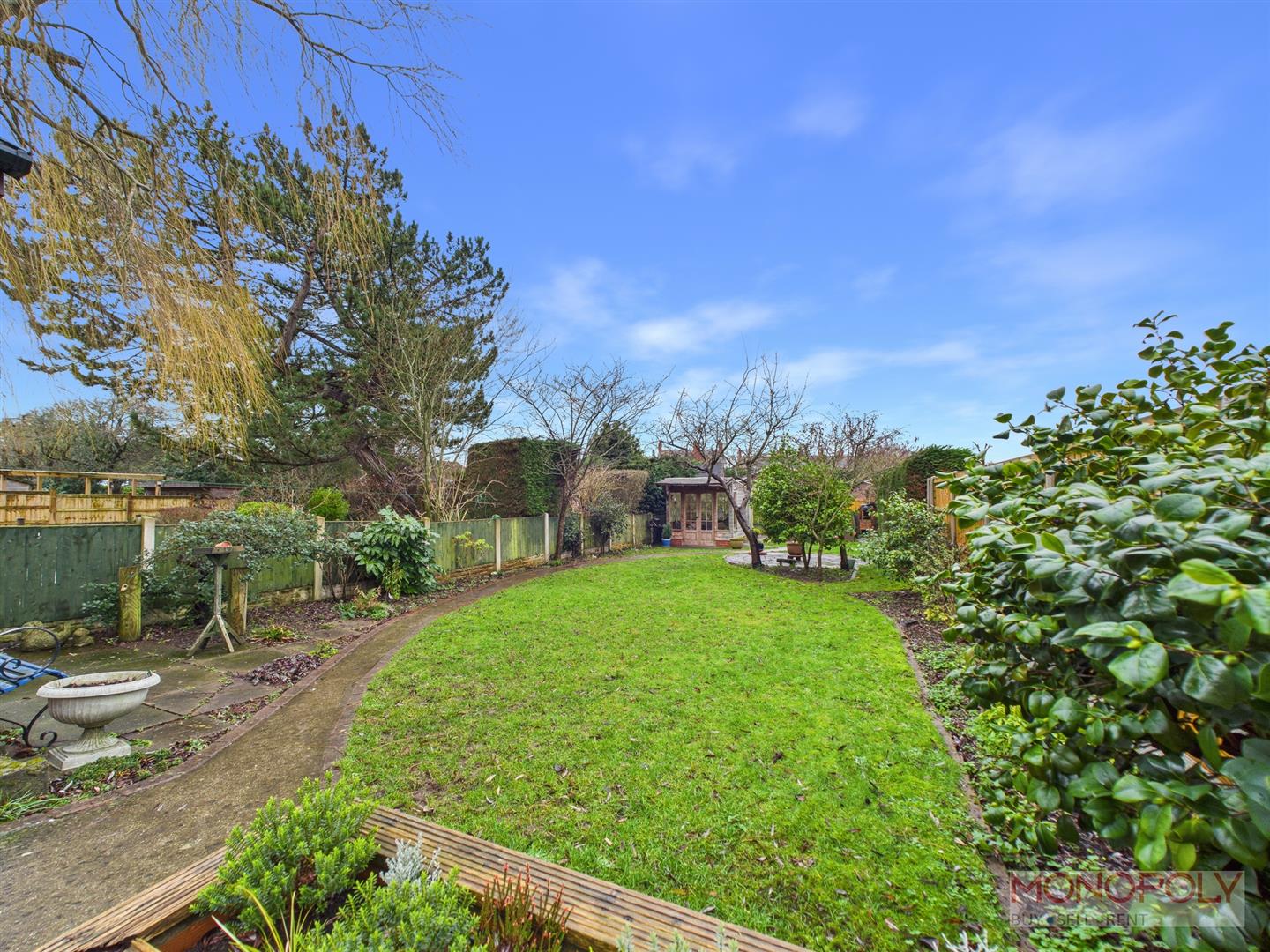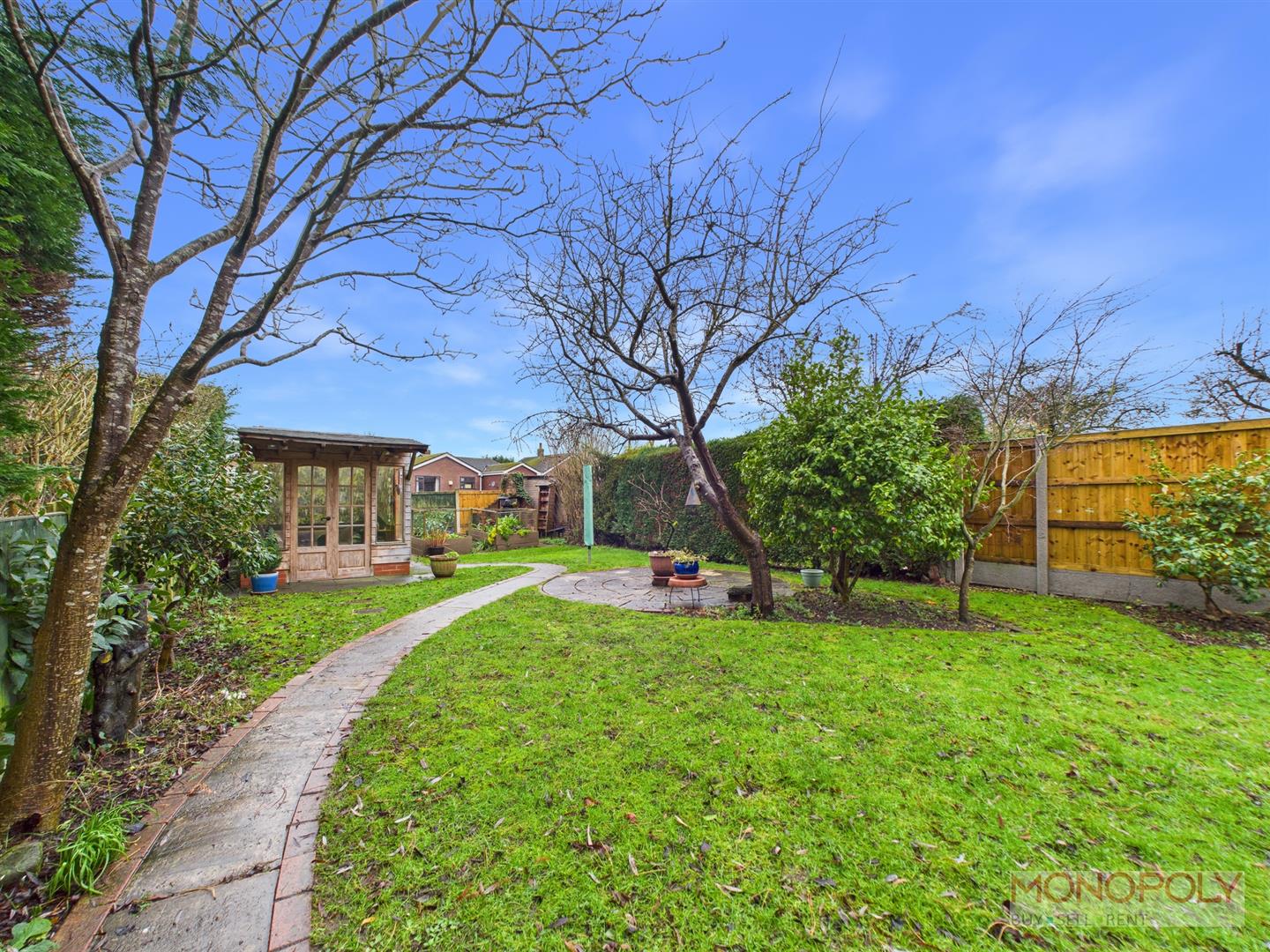 The driveway was re-done 18 months ago and provides space for multiple vehicles leading to the garage. The rear garden area has been thoughtfully landscaped and comprises of multiple paved patio areas, lawned garden, established shrubberies and trees. In addition there is a timber built summer house with adjoining greenhouse, brick built BBQ and raised bedding for vegetables. Additionally there is outside lighting, tap, fencing and hedging to the boundaries offering privacy and security. There is a side gate and path leading to front also.