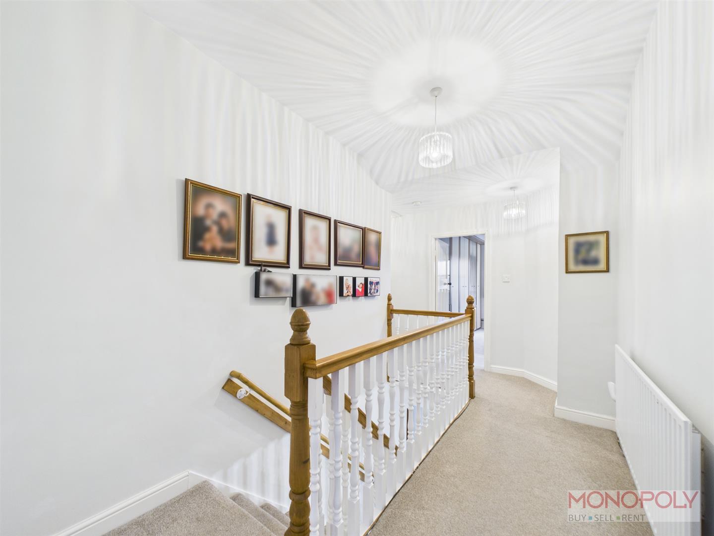 Spacious landing area with access to loft.. Airing cupboard with shelving, wall-mounted boiler and water cylinder. Three ceiling light points, radiator, carpet flooring and doors to bedrooms and bathroom.