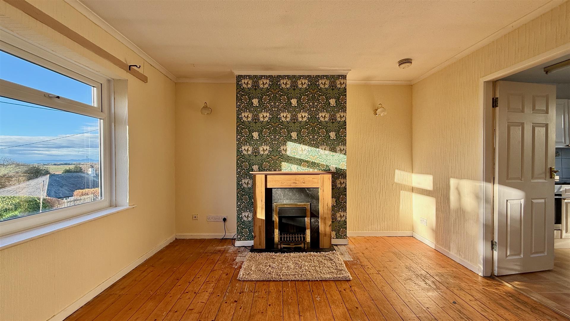 The spacious lounge/diner has a lovely aspect overlooking the garden with beautiful sea views and French door for easy access. It benefits from exposed pine floorboards and a feature fireplace with electric fire, the chimney is still in place and previously housing a log burner which new owners could reinstall if necessary.