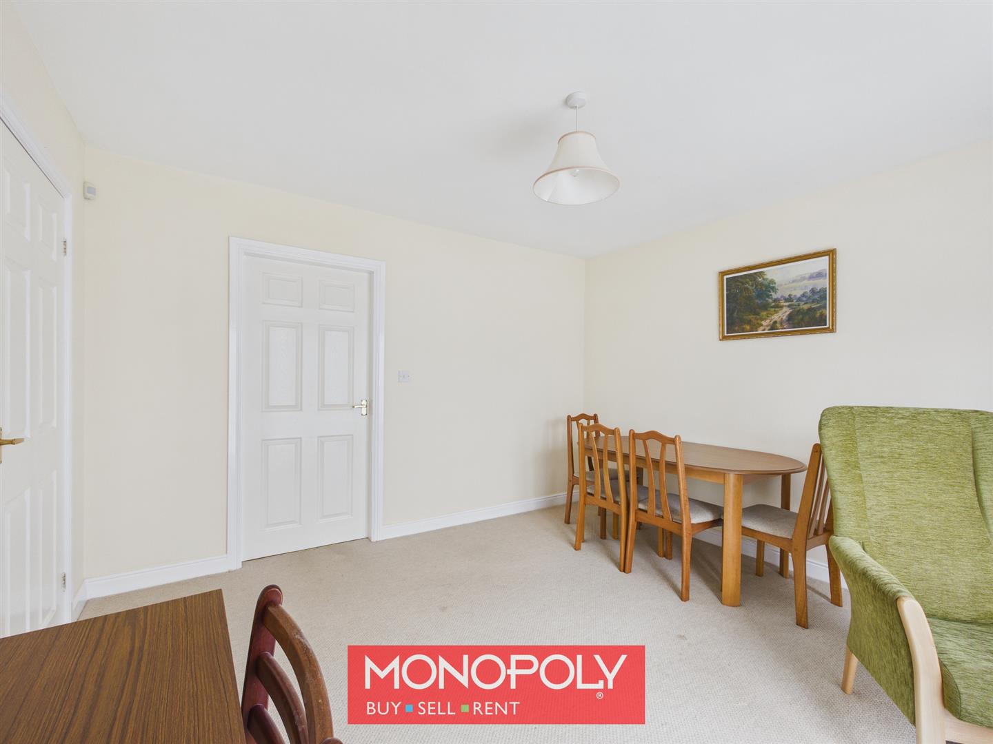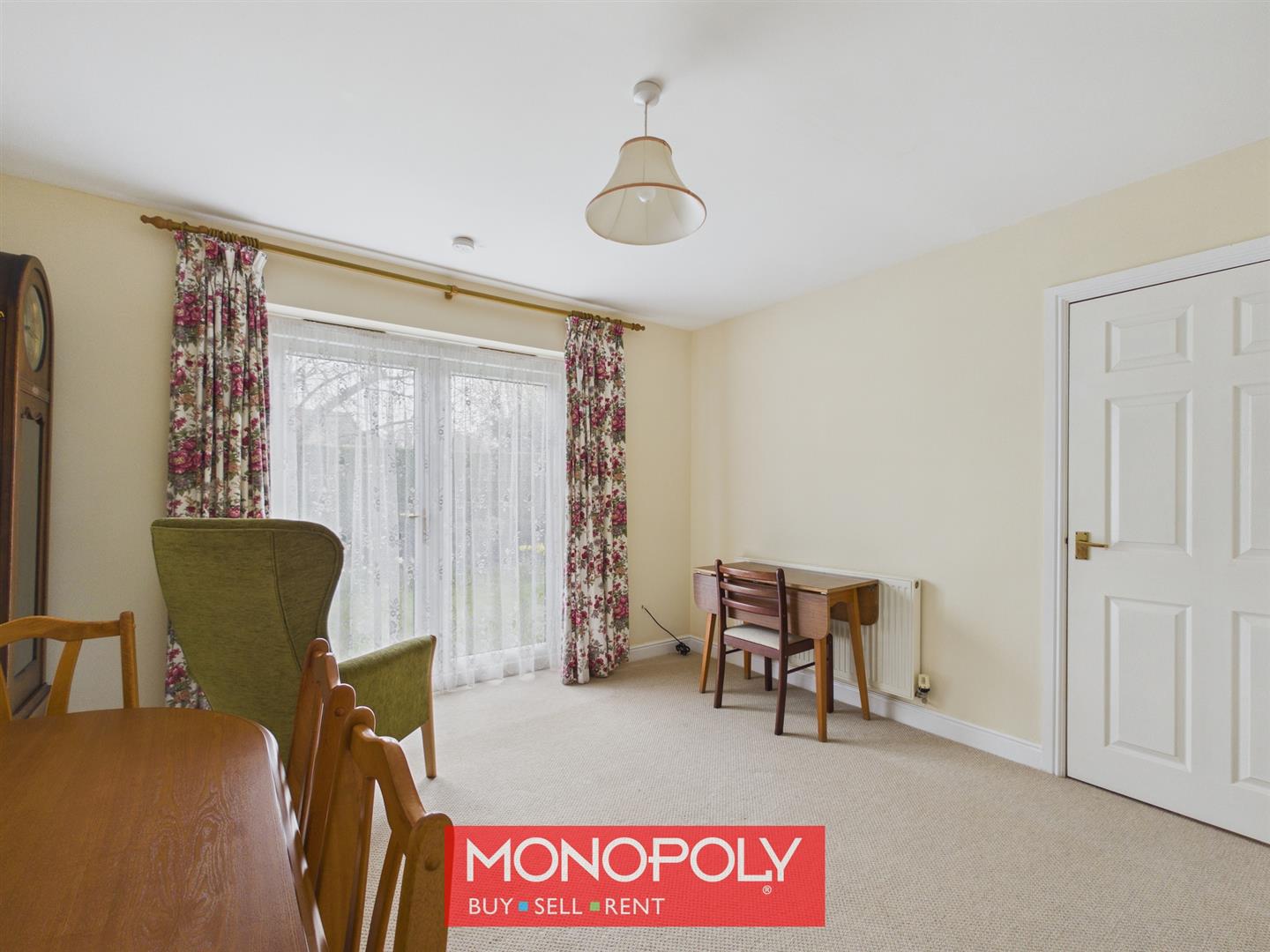 A versatile dining room offers ample space for a large dining table, making it ideal for both everyday use and entertaining. Patio doors open out to the garden, while an internal door links neatly back through to the kitchen.