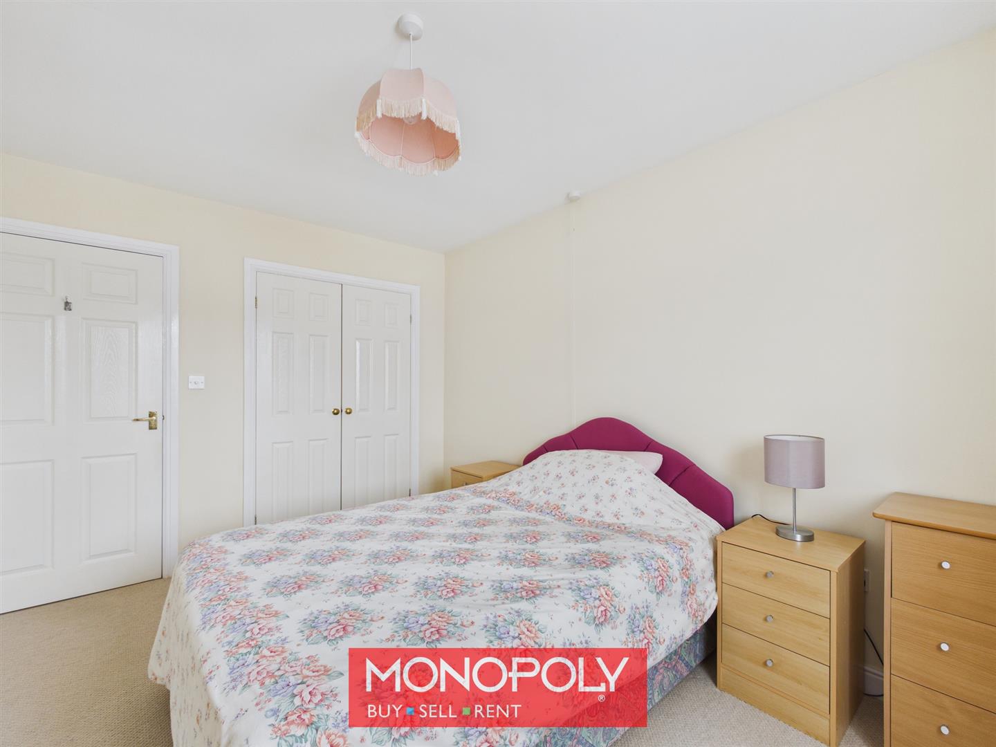 Another double bedroom with built-in wardrobes, carpet flooring and a window overlooking the side of the property. Ideal as a guest room, dressing room or home office.