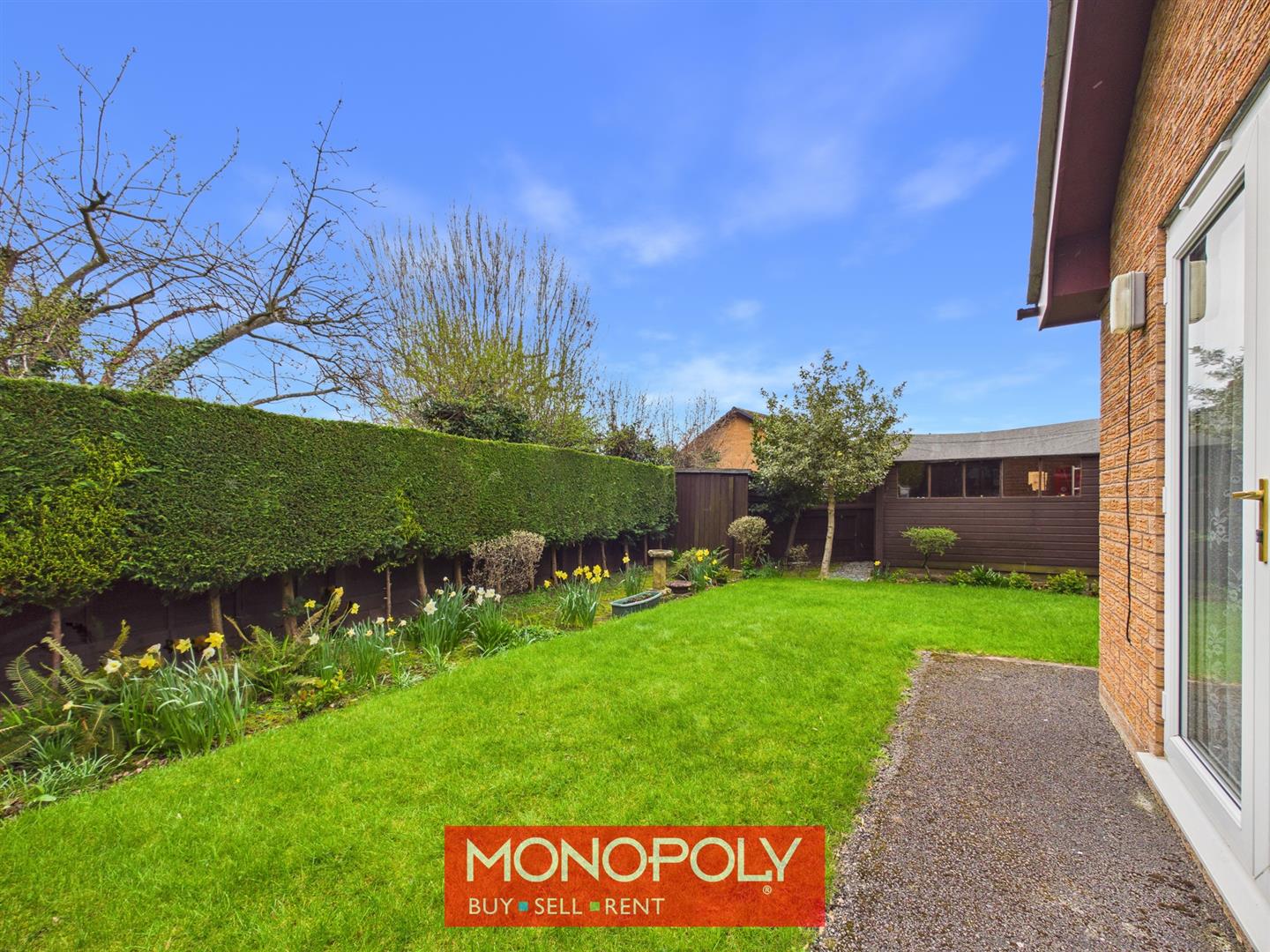A tarmac driveway provides off-road parking for three or four vehicles, leading directly to the garage. The front garden has been designed for ease of maintenance, with mature borders, evergreen hedging and raised planting adding colour and privacy.