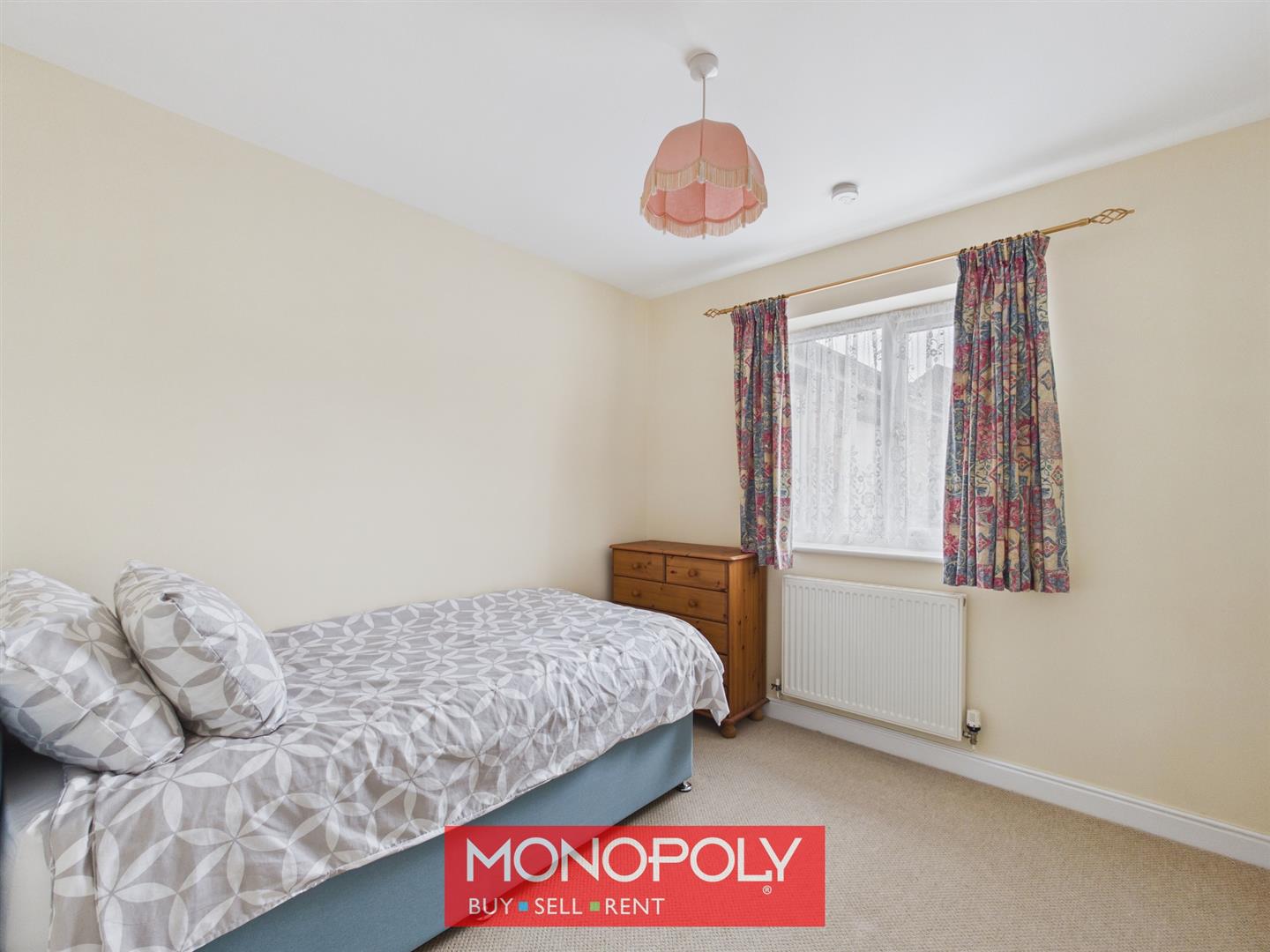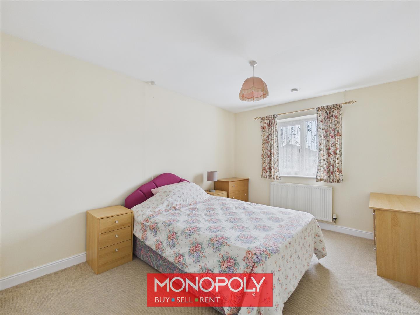 A further generous double bedroom positioned to the front of the property, complete with built-in wardrobes and radiator. A light switch conveniently positioned by the bed adds to the room’s practicality.