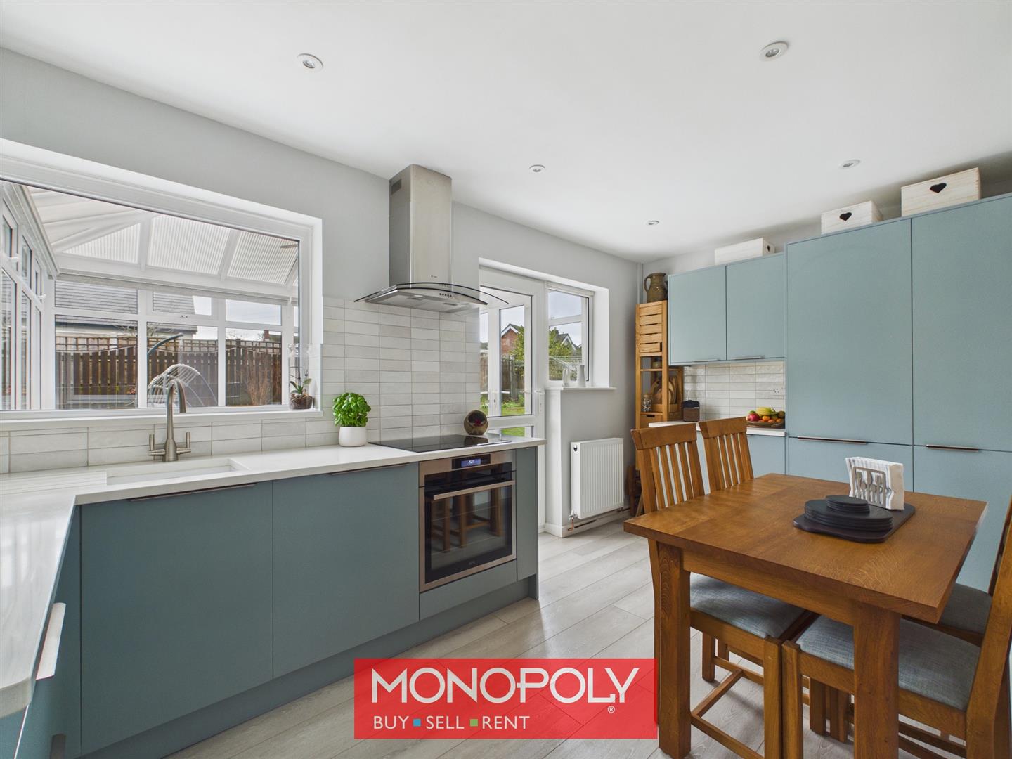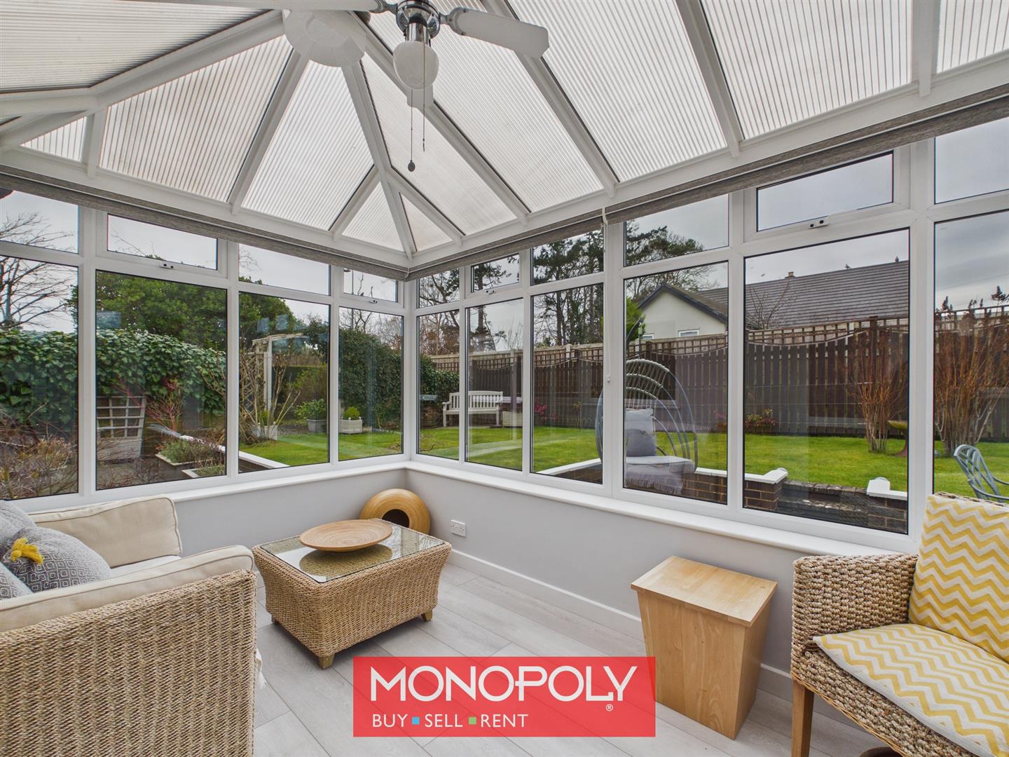 A bright and versatile addition featuring wood-effect laminate flooring, partial brick walls and double glazed windows. A fitted gas heater provides warmth and comfort, making the space ideal for year-round use. Twin double glazed patio doors open onto the rear garden, with a further uPVC glazed door connecting to the kitchen, allowing for excellent natural light and seamless indoor-outdoor flow.