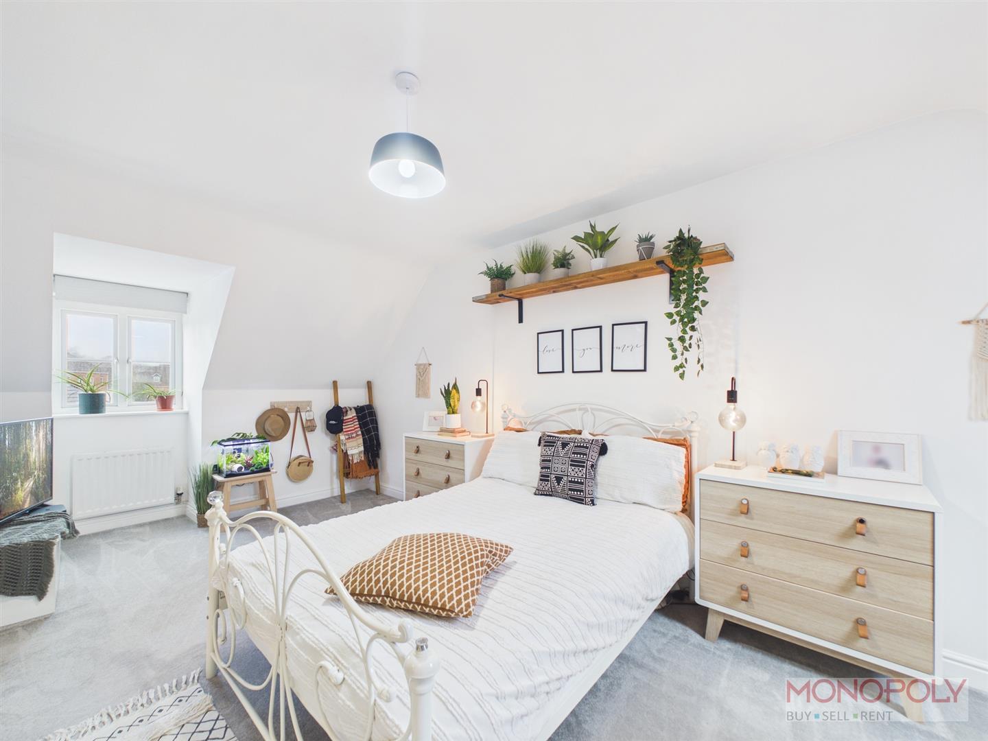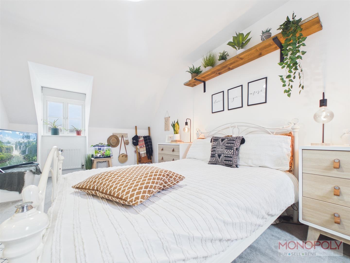 UPVC double glazed window to the rear elevation, radiator, ceiling light point, access to eaves storage/loft, built-in wardrobe and carpet flooring.
