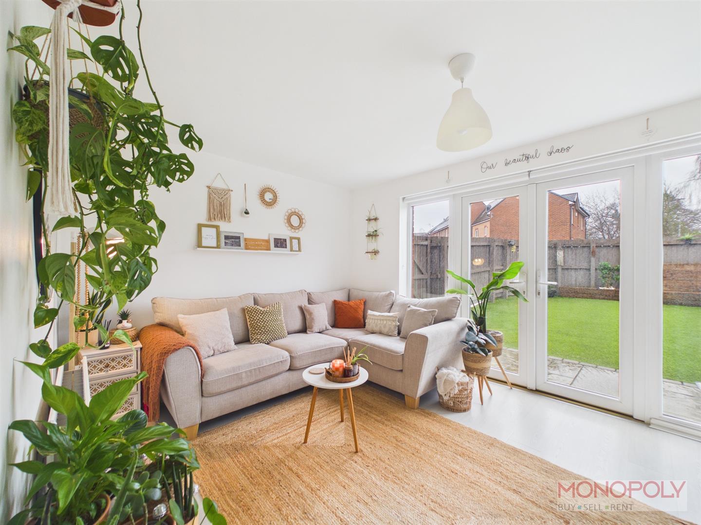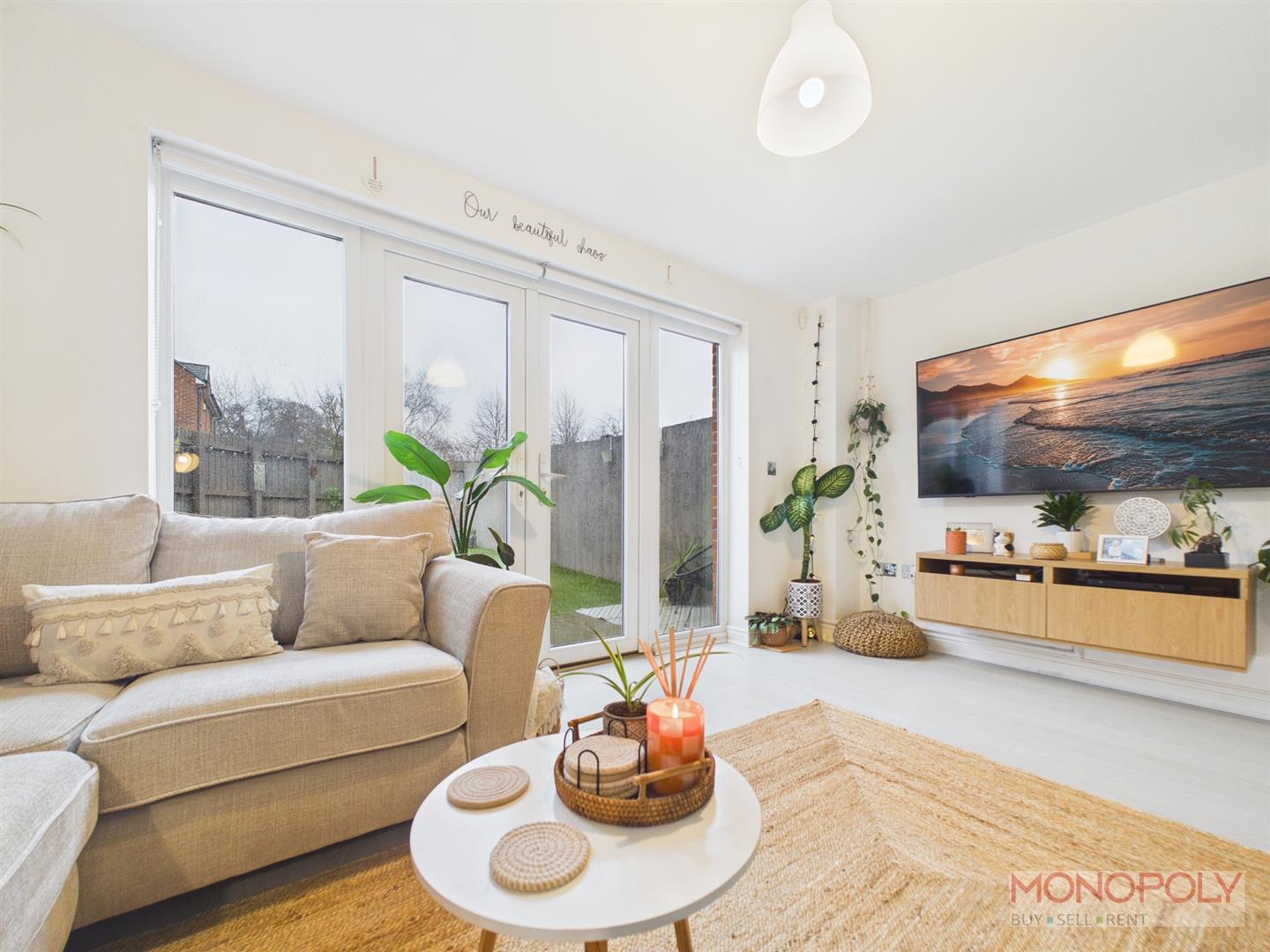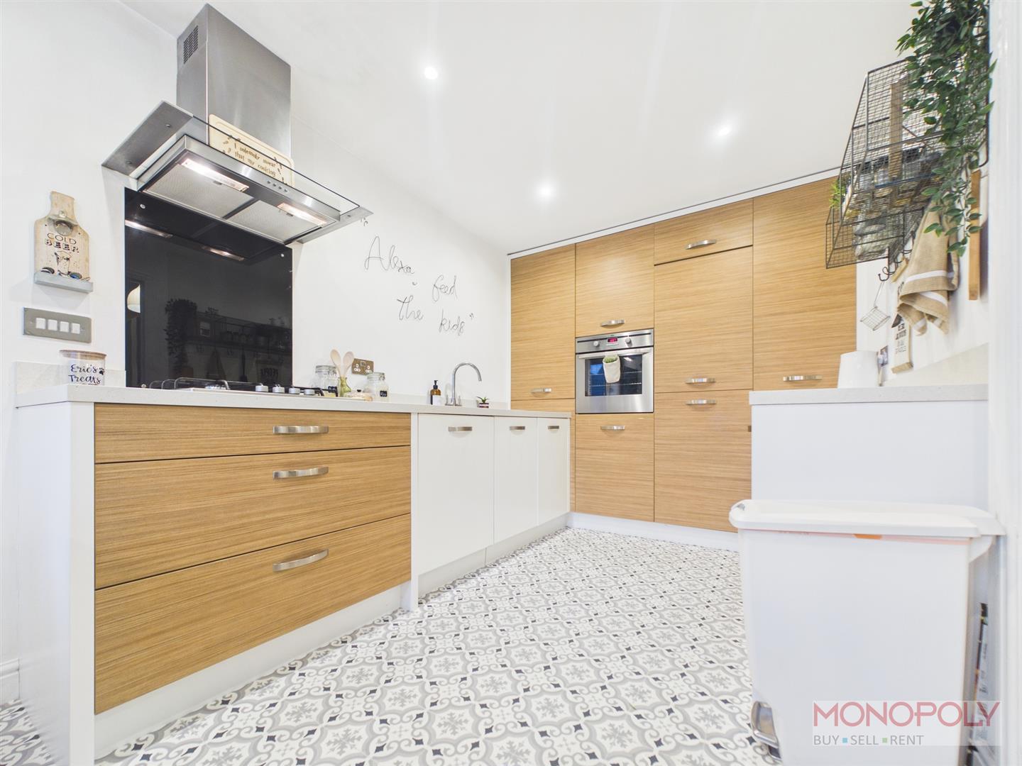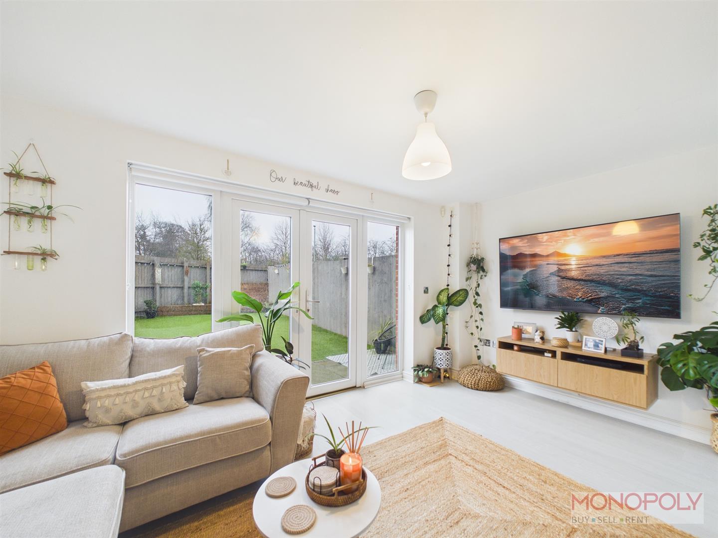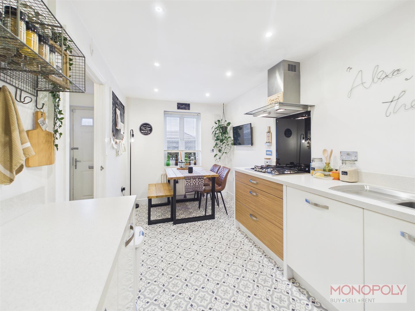 The ground floor welcomes you with a generous entrance hallway which leads to a contemporary kitchen with space for dining and a bright living room with French doors opening onto the rear patio. The first floor provides two well-proportioned bedrooms and a stylish three-piece family bathroom, while the impressive top floor principal suite benefits from built-in wardrobes, a skylight, and a modern en-suite shower room. Externally, the property features a low-maintenance rear garden with artificial lawn and patio area, an outdoor tap, side access gate, and an allocated parking space to the rear. The property benefits from a garage which is leasehold. To the front is a a paved walkway and steps leading to the front entrance.