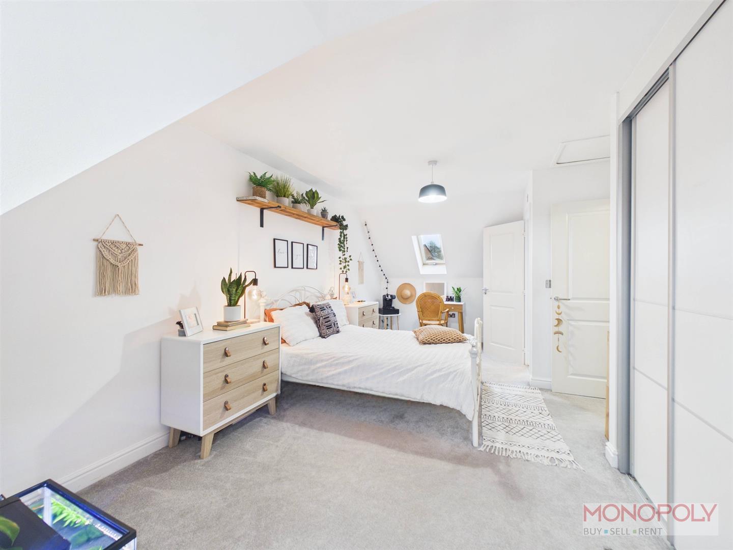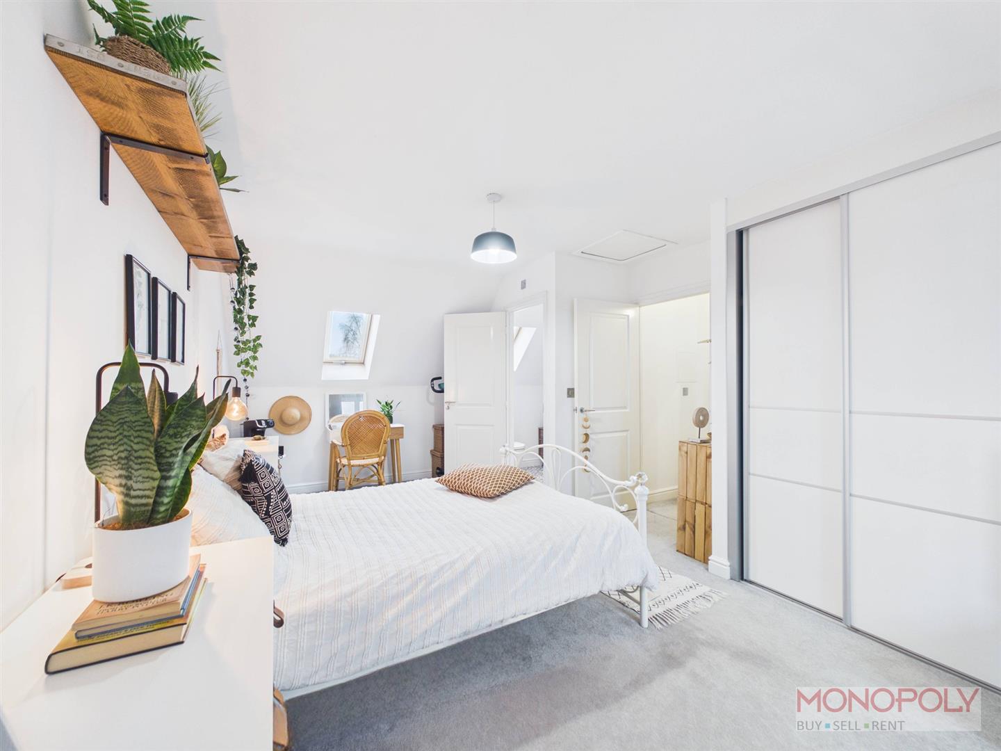 An impressive second floor main bedroom with UPVC double glazed window to the front elevation and skylight to the rear elevation, built-in wardrobe, radiator, ceiling light point, dressing area and door into en-suite.