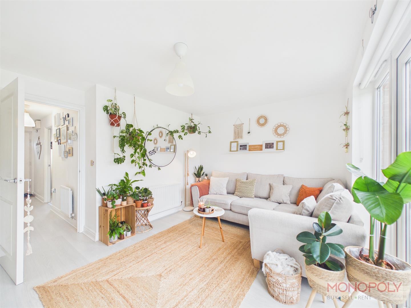 UPVC double lazed window to the front elevation, carpet, radiator, ceiling light point, stairs rising to the second floor and doors off to bedroom two, three and the bathroom.