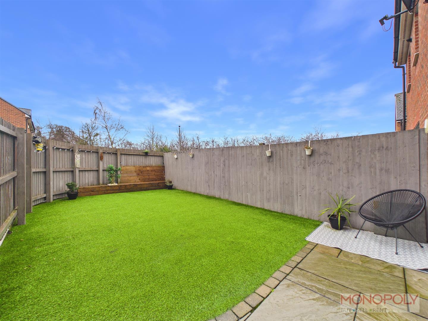To the rear of the property is a predominantly artificial lawned garden which features a decked seating area to the back. There is a patio area leading on from the French doors. The garden is bordered by a wooden fence and has a gate which leads to the side of the property. To the side the property benefits from having a designated parking space. In front of this is a leasehold garage for the property.
