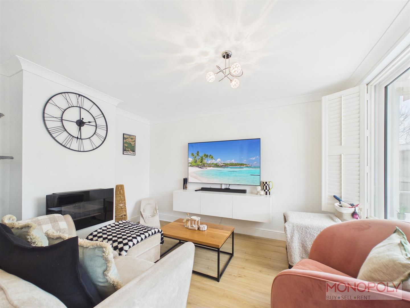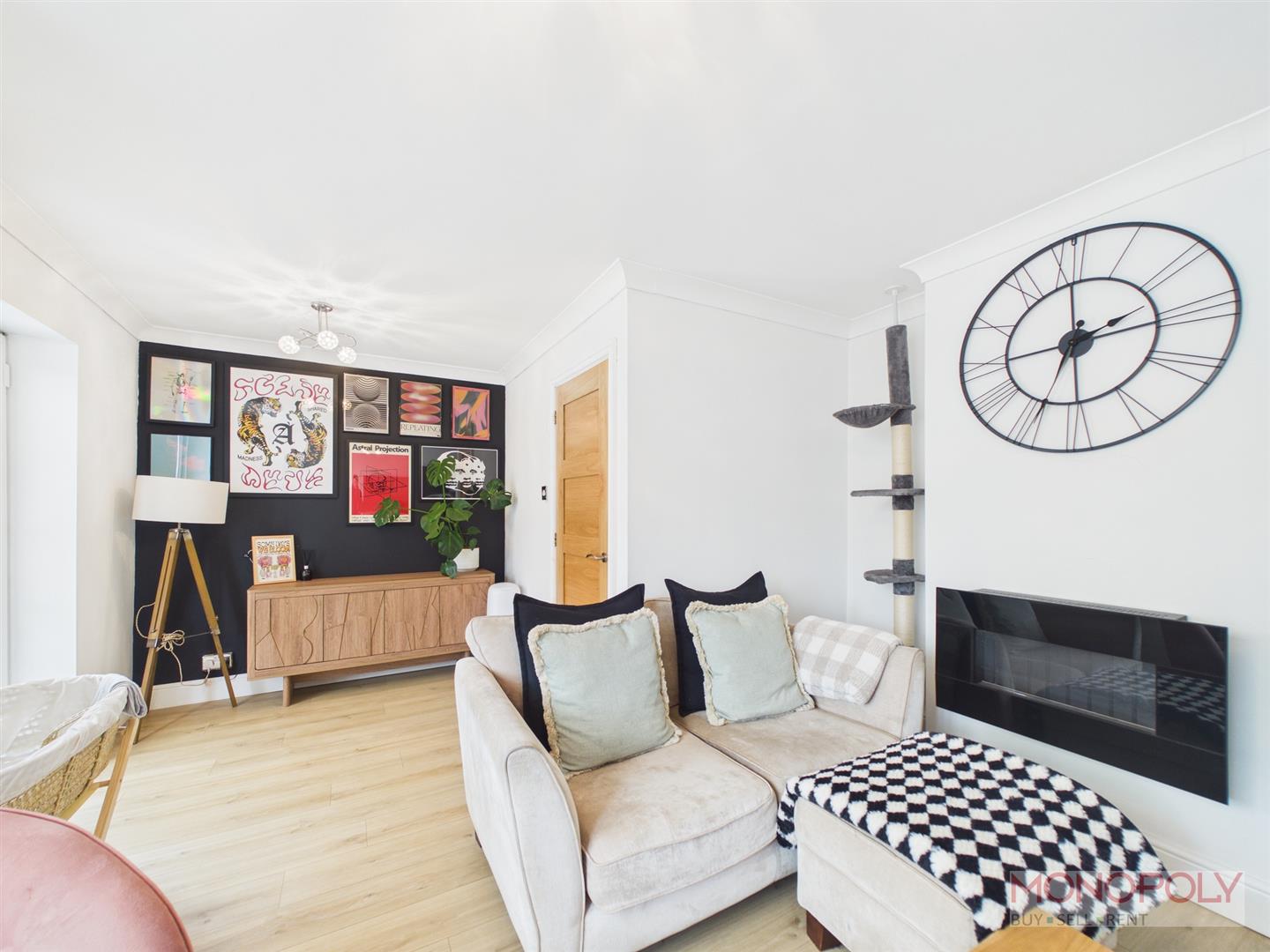 Superbly presented with a double glazed window looking into the conservatory, wood effect flooring, wall mounted electric fire.
