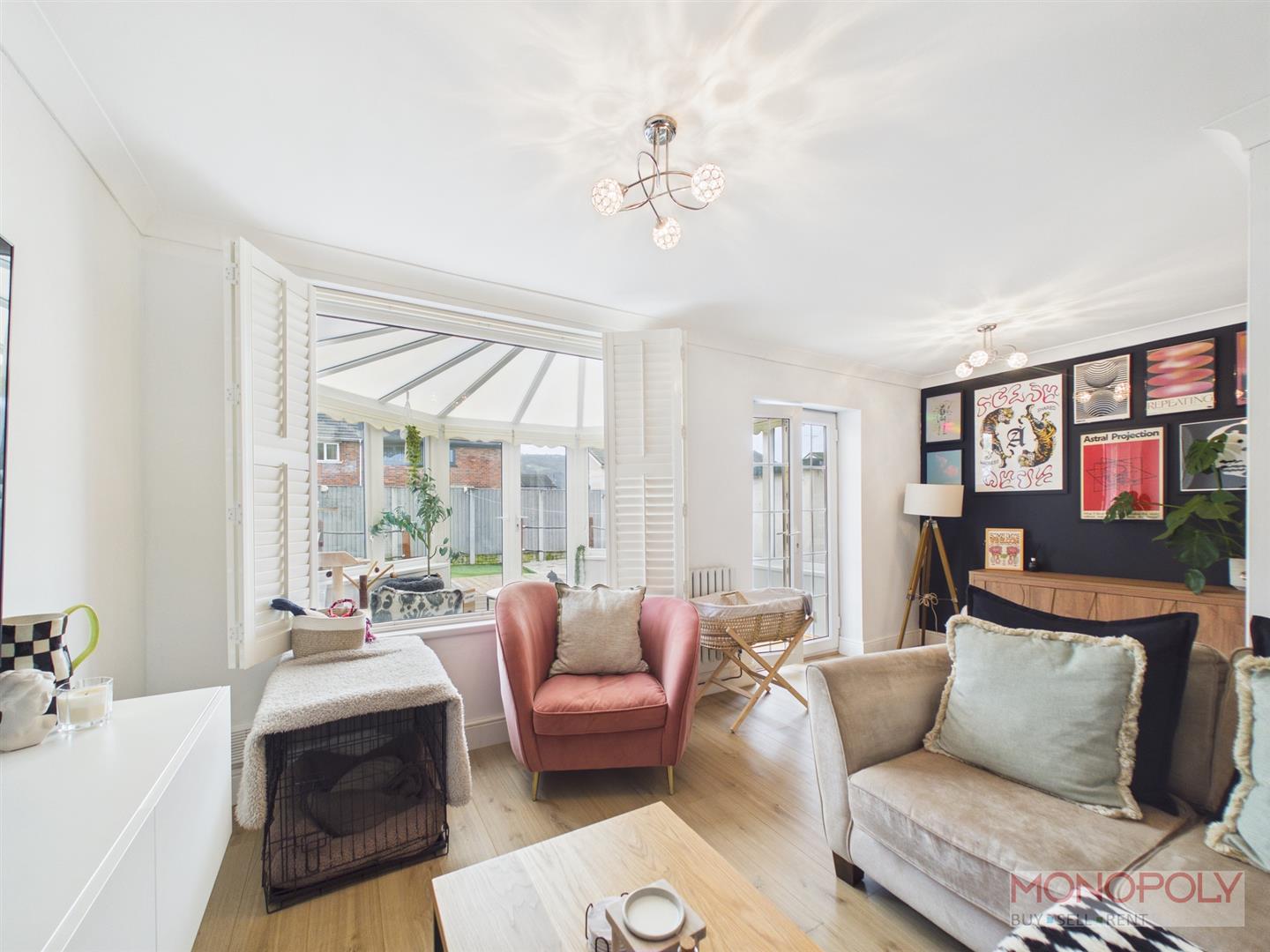 A superb extra living space with double glazed windows looking out to the rear garden, french doors, wood effect flooring.