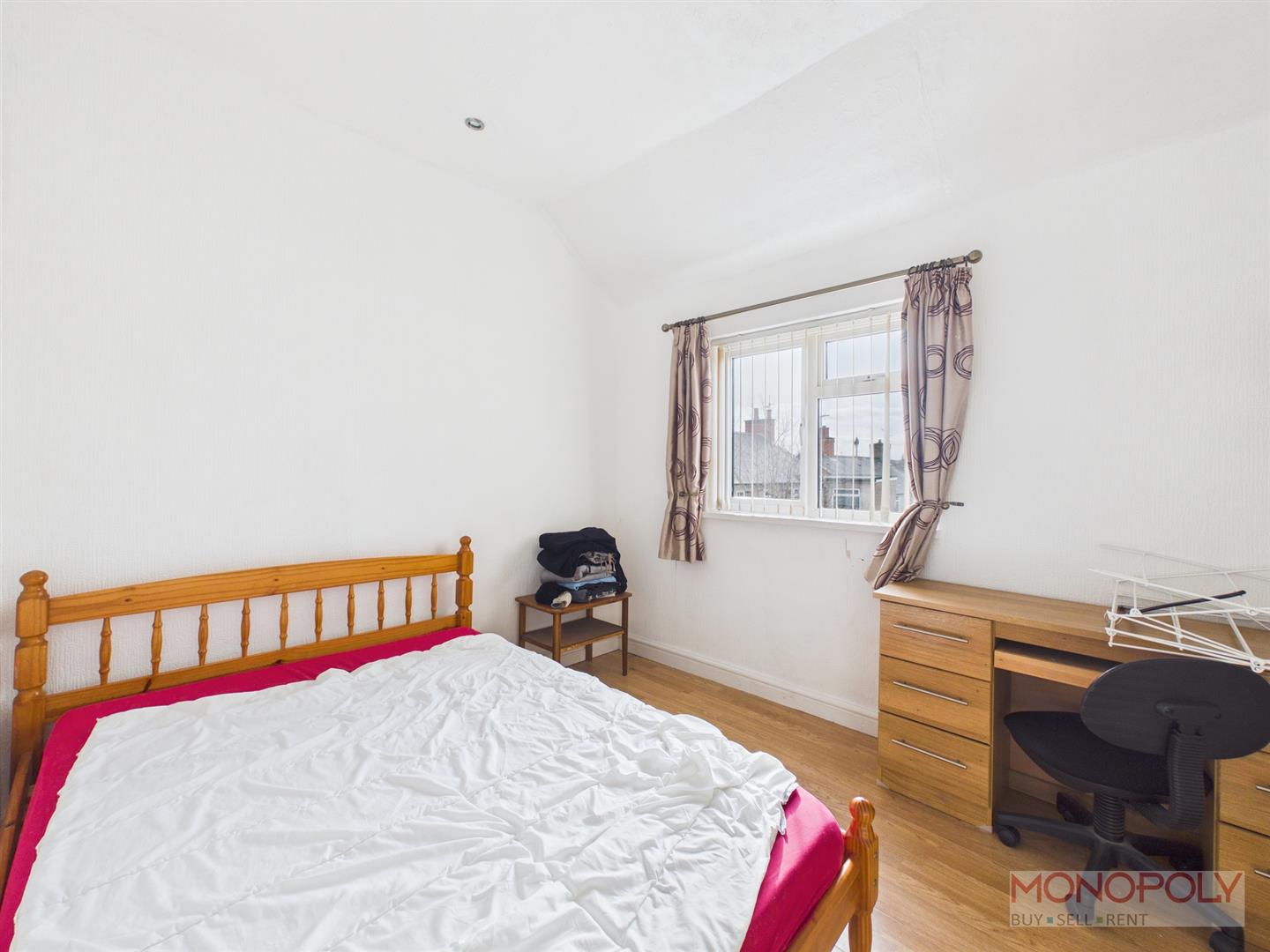 A double bedroom with a double glazed window to the rear, wood effect flooring.