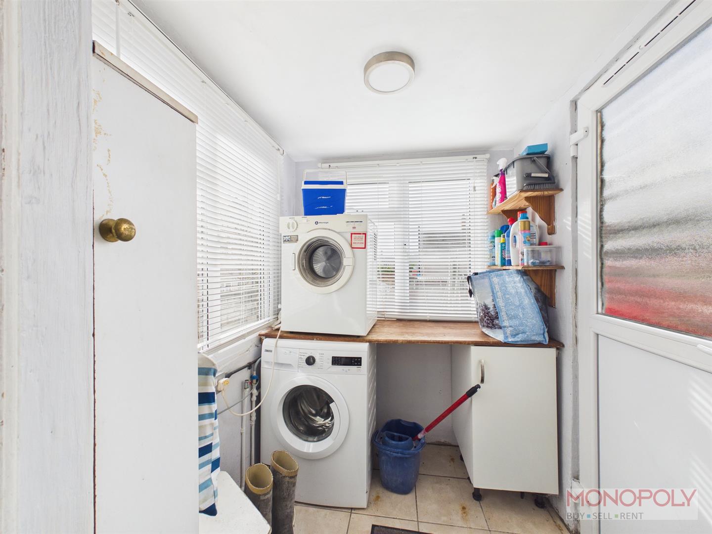 With tiled flooring, plumbing for a washing machine, space for a dryer, double glazed window.