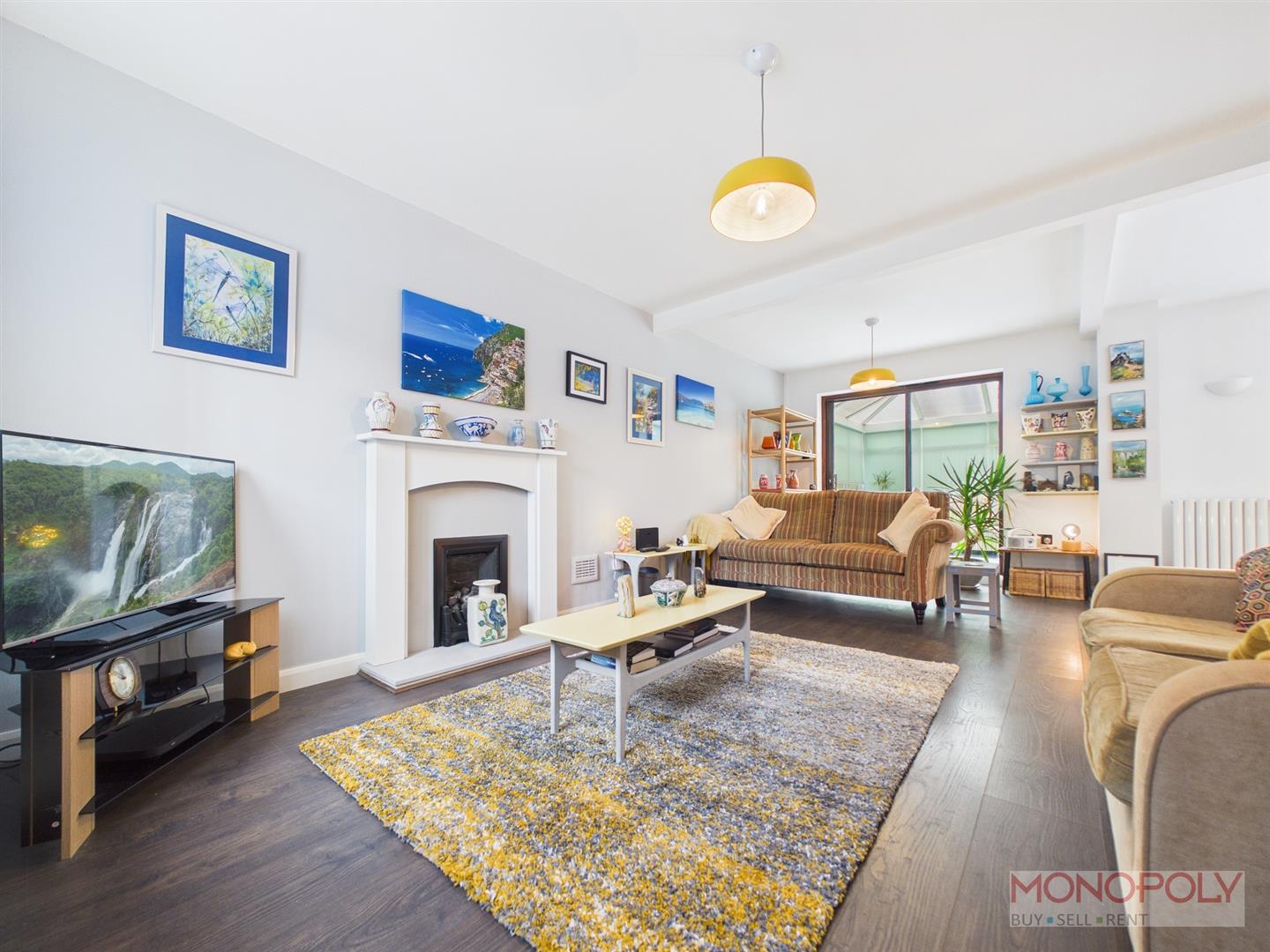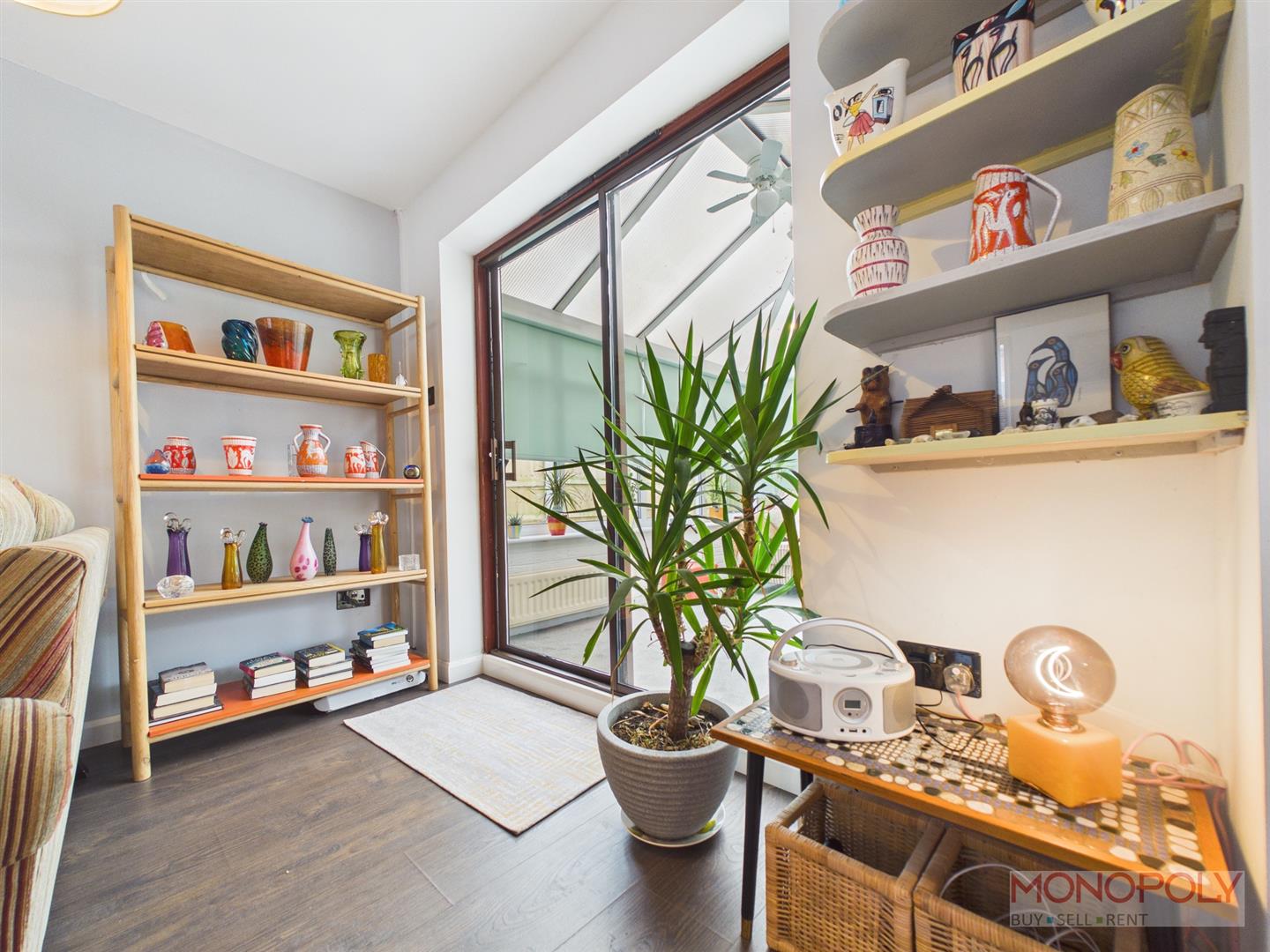 Wooden double glazed window to the front elevation and aluminum doors to conservatory. Continuation of wooden laminate flooring, radiator, two ceiling light points and door into hallway.