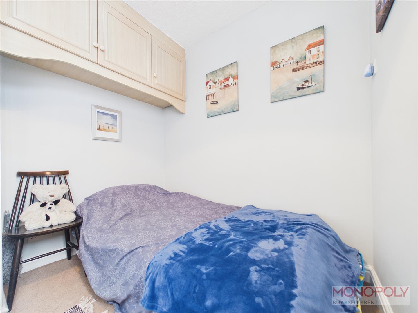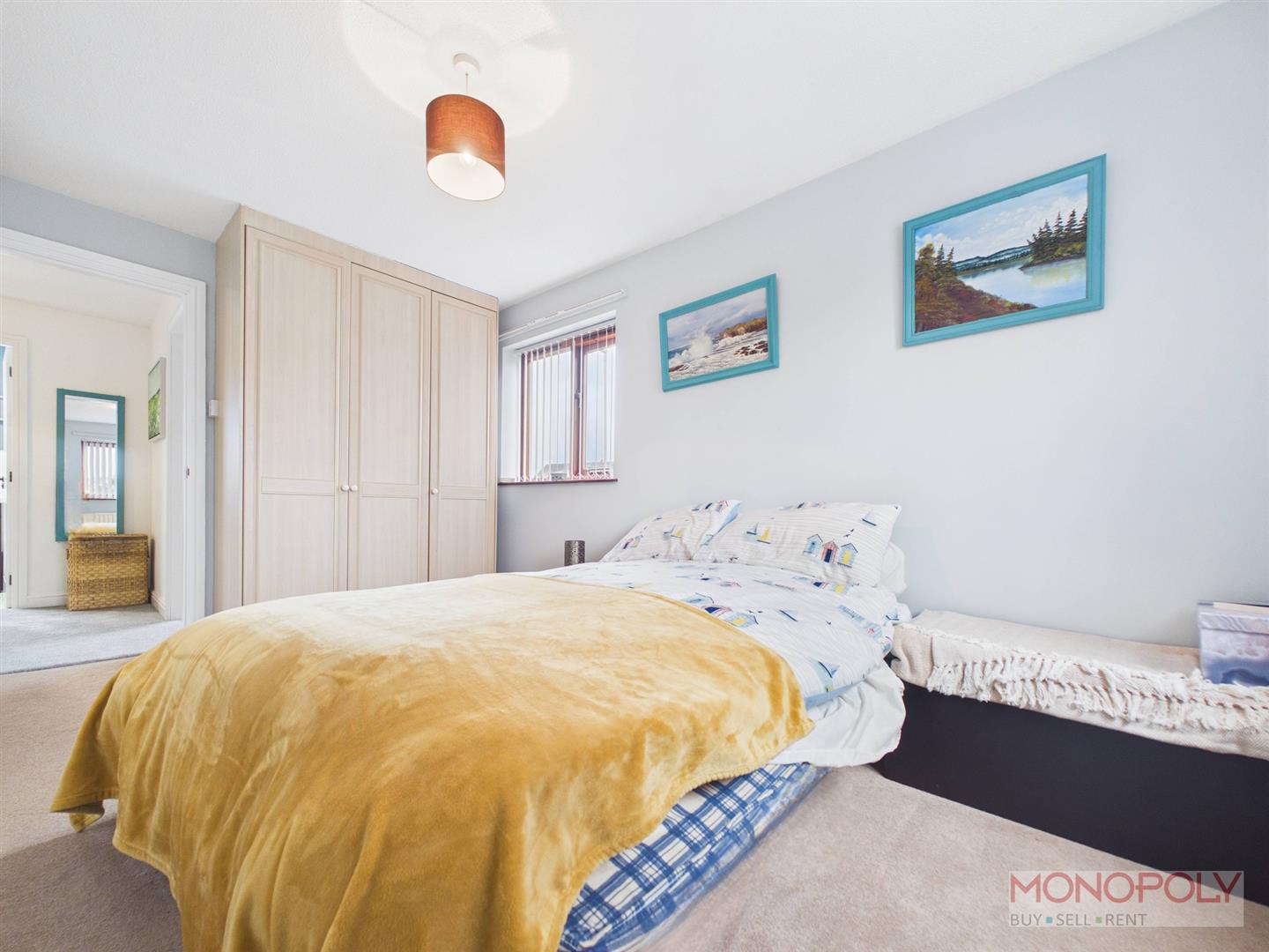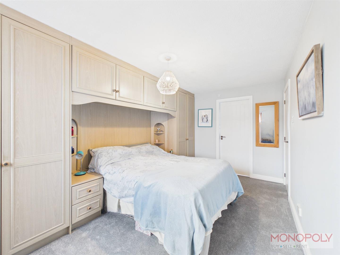 Wooden double glazed windows to the rear elevation. Housing fitted wardrobe and an overhead storage unit. Carpet flooring, ceiling light point and panelled radiator.