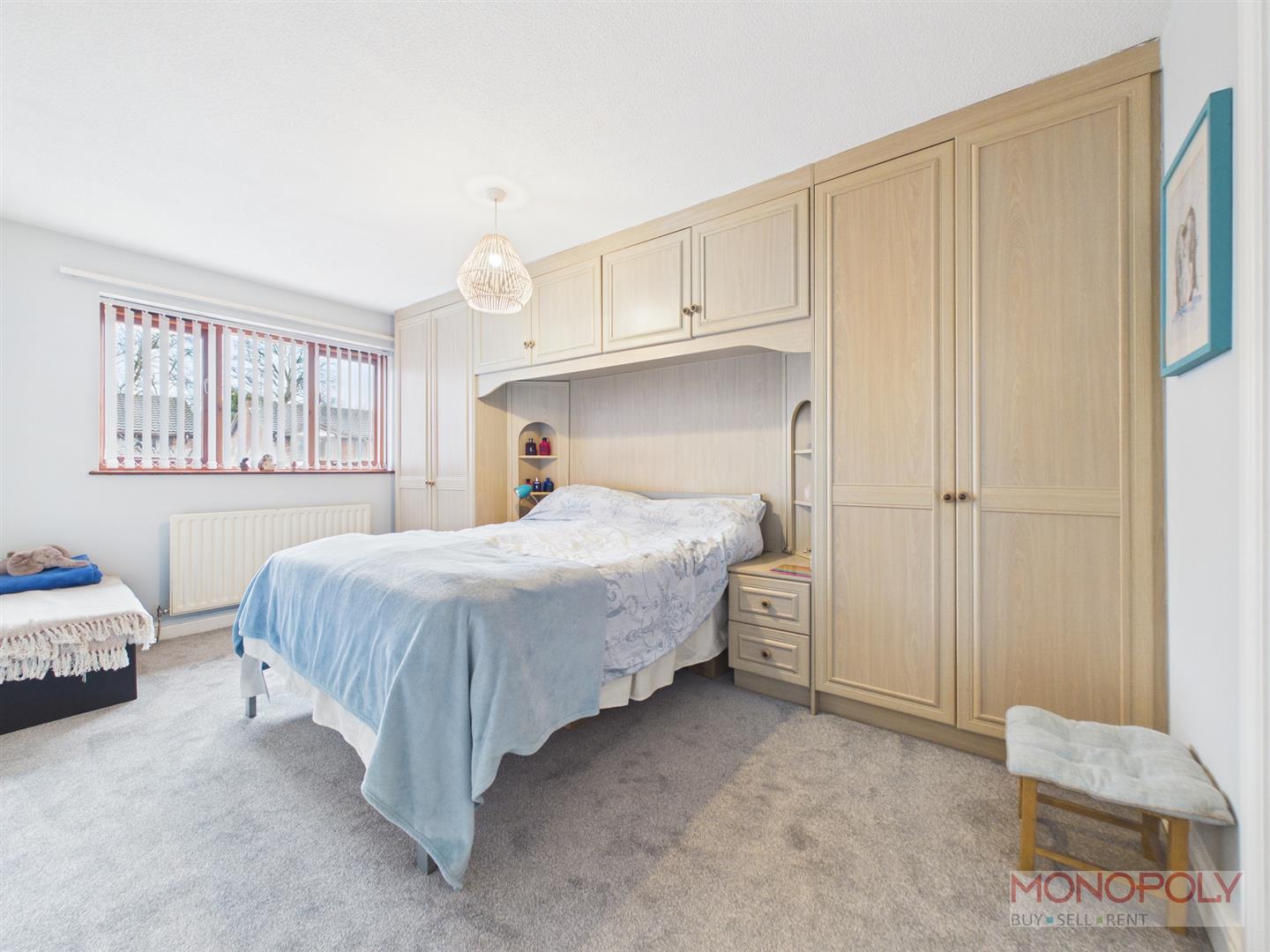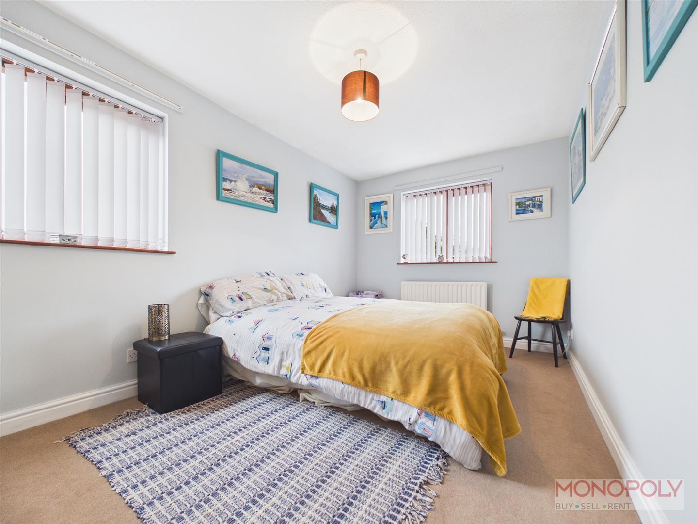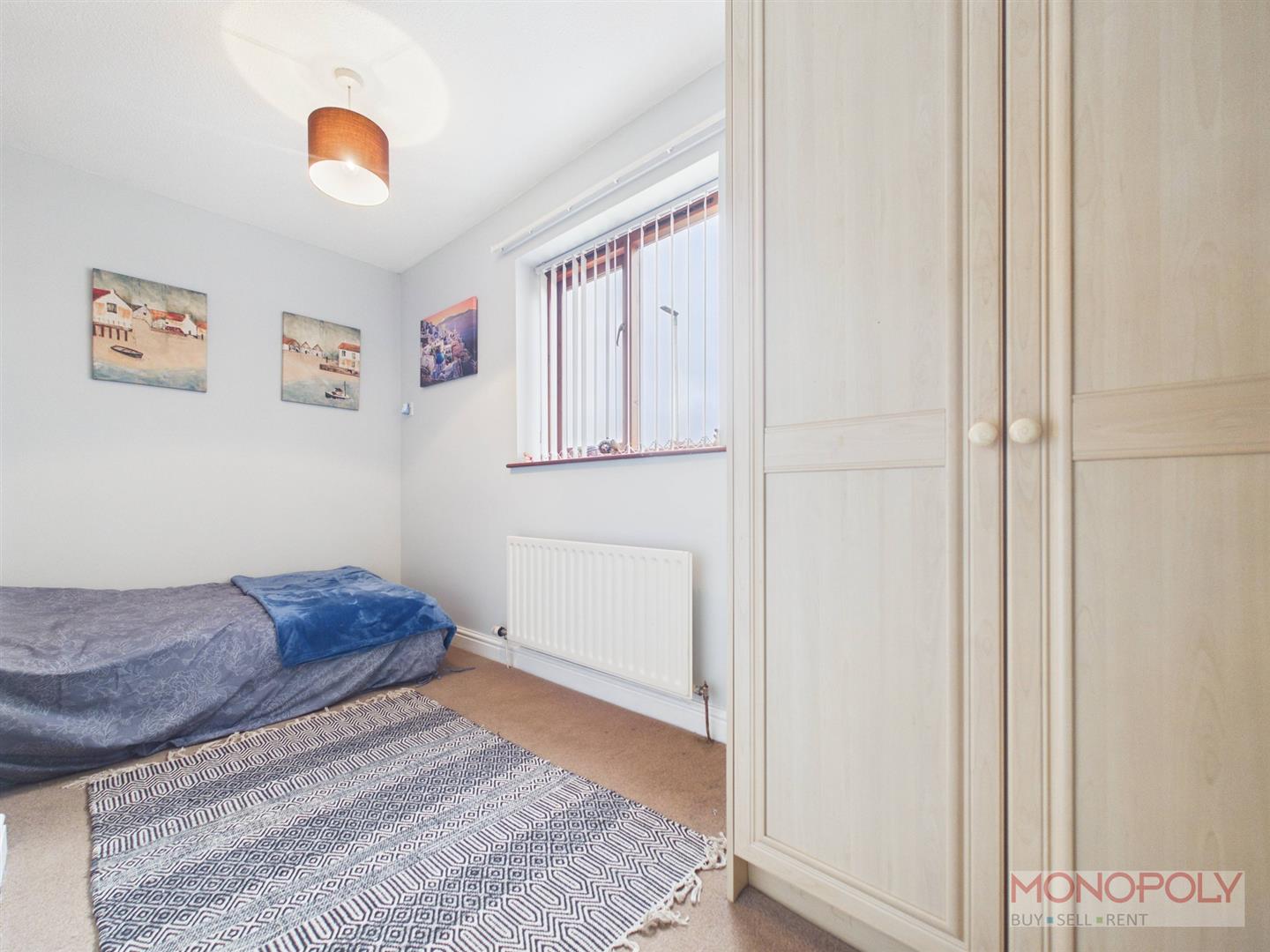 Wooden double glazed windows to the rear elevation. Housing fitted wardrobe and an overhead storage unit. Carpet flooring, ceiling light point and panelled radiator.
