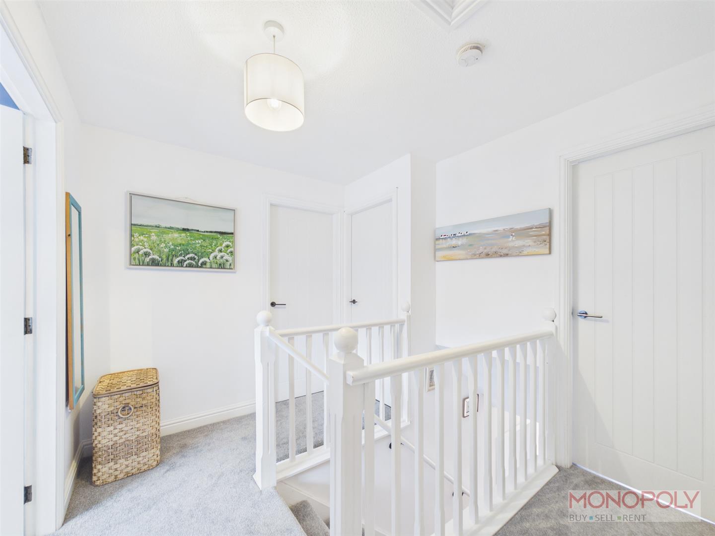 Spacious landing area with carpet flooring, access to loft, ceiling light point, doors off to four bedrooms and bathroom.