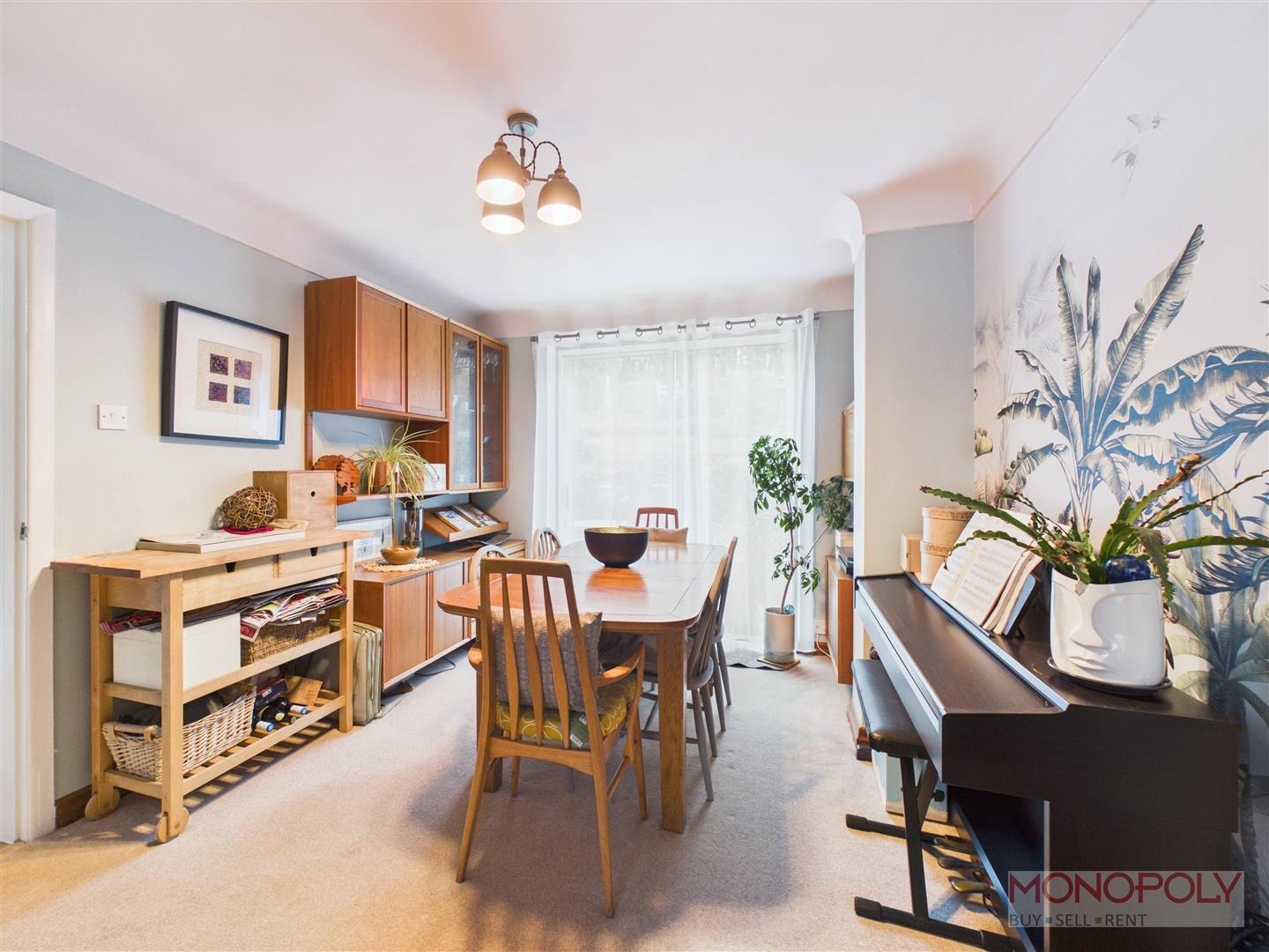 Featuring a multi-fuel burner set on a slate hearth with wooden mantle, ceiling light point, radiator, original parquet flooring, glazed wooden doors into the dining room and uPVC double glazed window to the front.