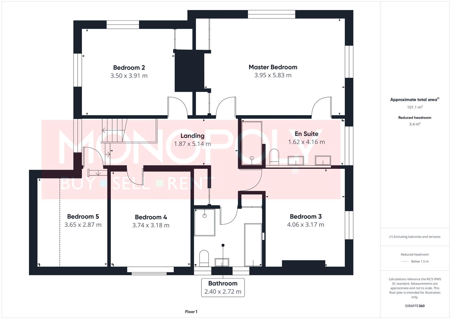 This spacious landing is carpeted and features a classic wooden banister with spindles, creating a warm and welcoming feel. Offering access to all bedrooms and the bathroom, it also includes built-in storage housing the water tank, combining practicality with traditional charm.