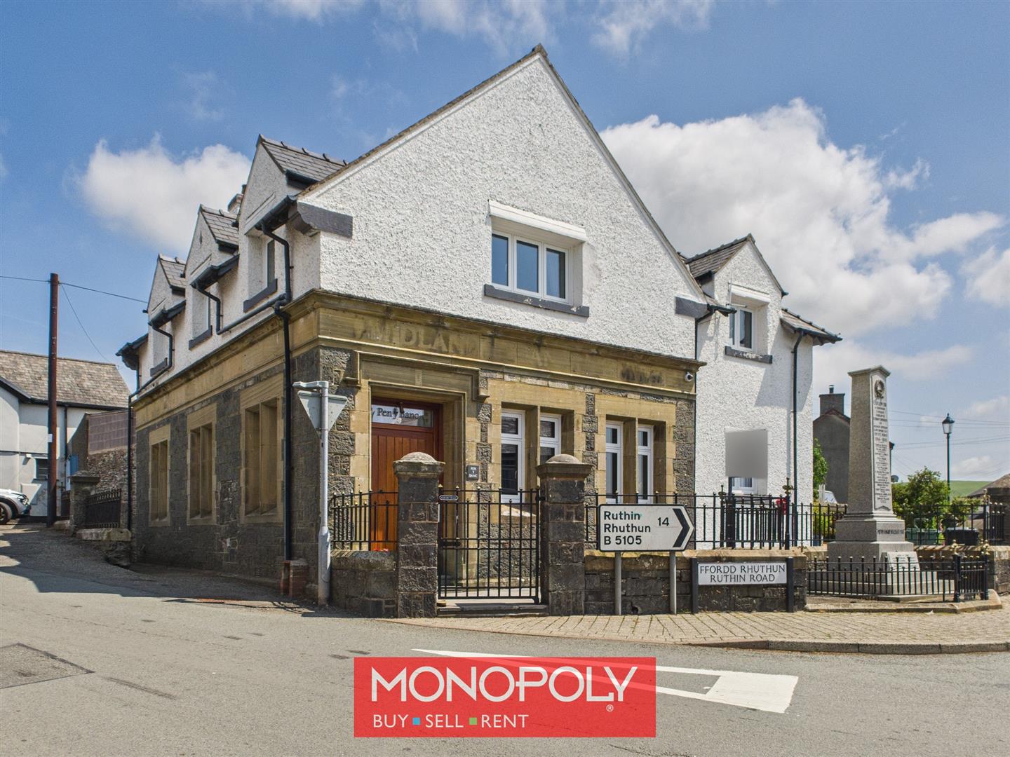 MONOPOLY BUY SELLL RENT are pleased to offer for sale this exceptionally well-proportioned family home. Built in 1905 as the village bank with the manager’s accommodation above, this distinctive stone-fronted property lies in the heart of Cerrigydrudion, just a short stroll from the local pub, chapel, and primary school. Behind its historic façade lies a deceptively spacious and beautifully updated home, offering a substantial lounge and a large open-plan kitchen/diner ideal for modern family living. The property boasts five bedrooms, two full bathrooms, and a cloakroom, all thoughtfully laid out across two floors. Recent upgrades include newly installed double-glazed windows throughout and underfloor heating to the ground floor, enhancing both comfort and energy efficiency. Outside, the low-maintenance garden features a private patio area, an external boiler room, and an adjoining garage. With far-reaching views over the surrounding countryside, this unique home effortlessly combines period charm with contemporary convenience.