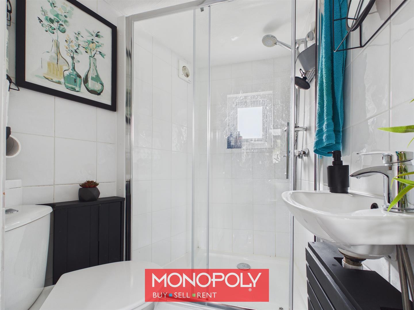 A useful addition, fitted with a corner low flush WC, wall-mounted wash hand basin, and enclosed shower unit with thermostatic shower. The room is finished with vinyl flooring, fully tiled walls, extractor fan and ceiling lighting, making it both practical and easy to maintain.