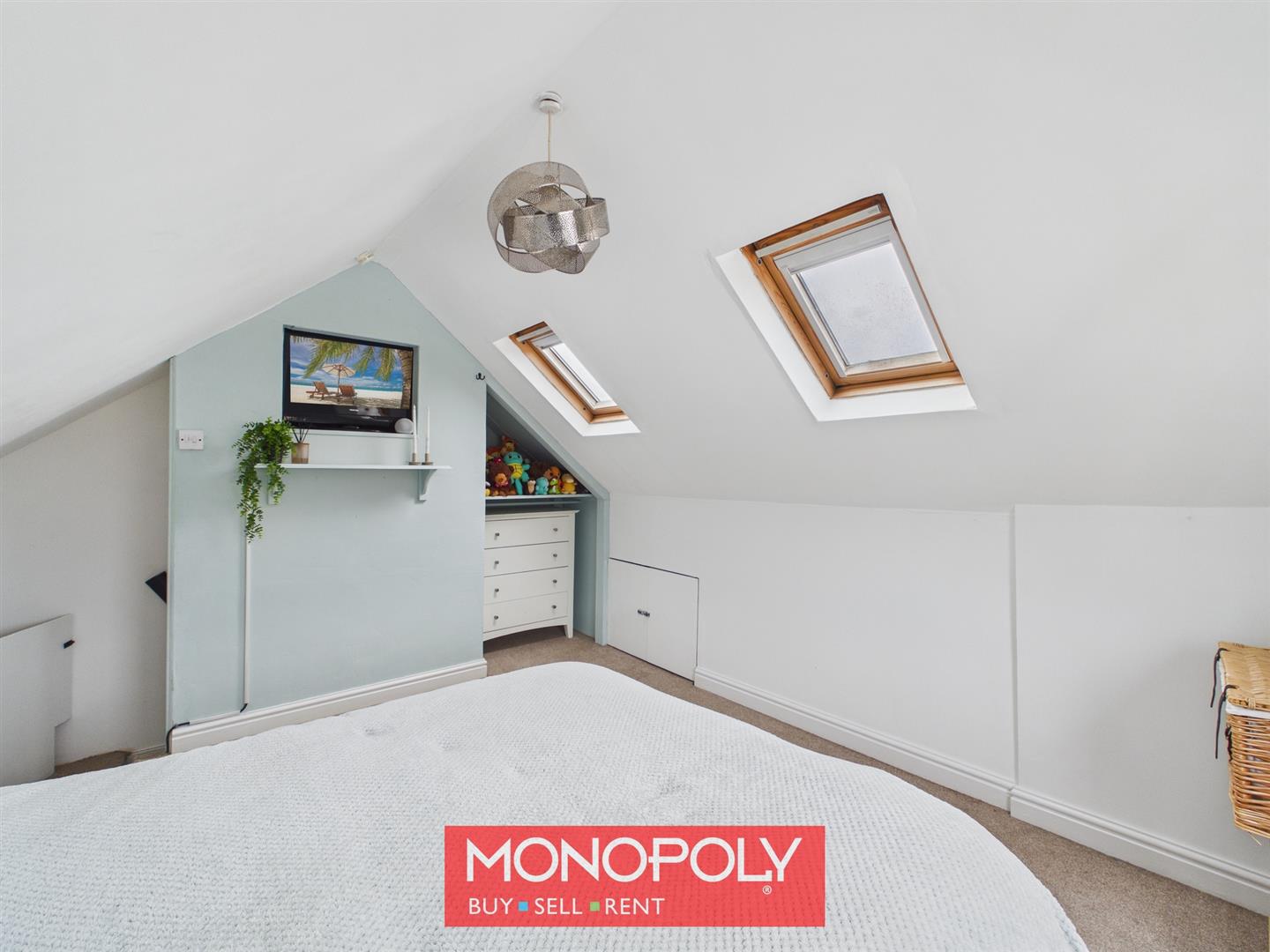 A standout feature of the property is the spacious loft room. This large and versatile space is carpeted and enjoys natural light from two Velux roof windows as well as a side window. There is useful storage within the eaves on both sides, and a recessed area provides an ideal space for a television or study nook. Currently used as a bedroom this room offers flexibility for a range of uses, subject to any necessary consent.