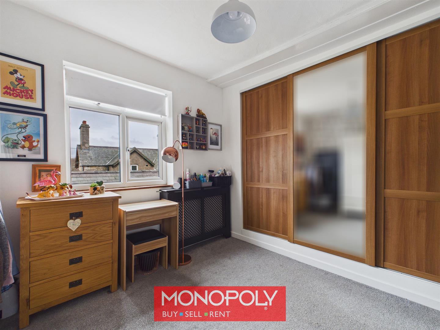 Generous double bedroom, finished with carpeted flooring and benefiting from built-in storage. A large full-width wardrobe with sliding doors provides excellent storage space, with one mirrored/glazed panel enhancing the sense of light and space.