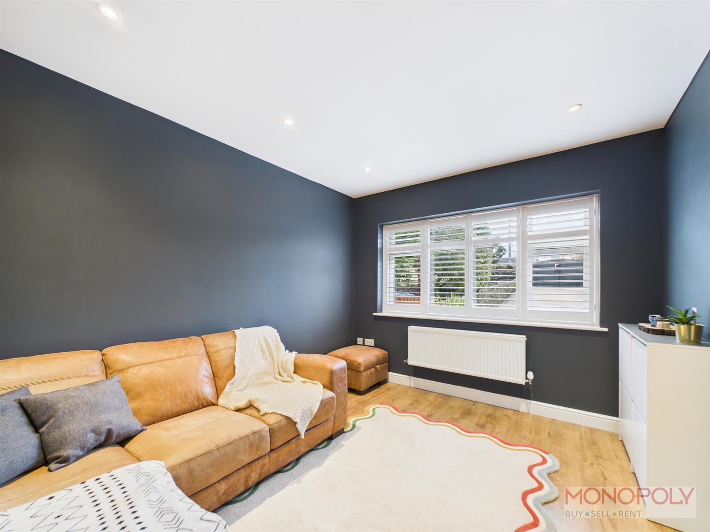 Window to front, laminate flooring, spotlights to ceiling.