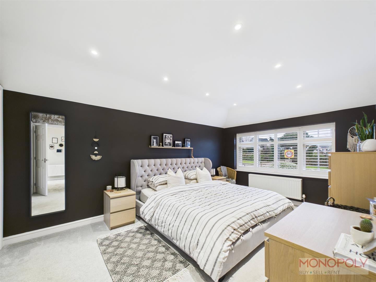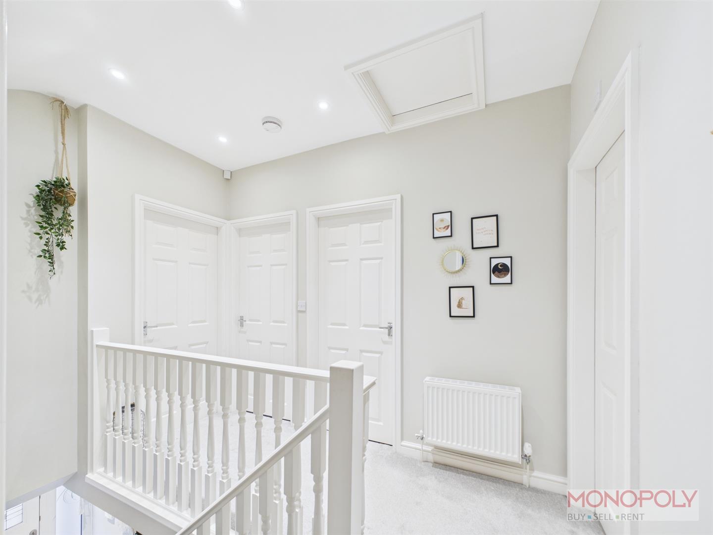 Carpet, doors to four bedrooms and bathroom. Spotlights, smoker detector and loft access to ceiling.