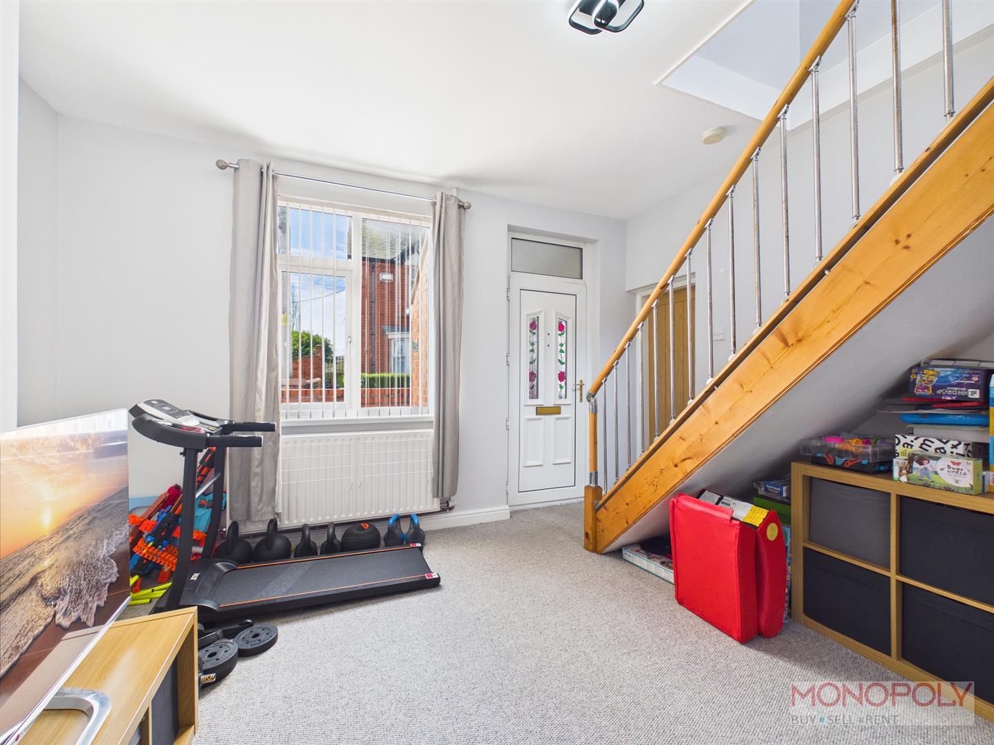 Stairs rising to the first floor, doors to inner hall and lounge/diner, window to front.