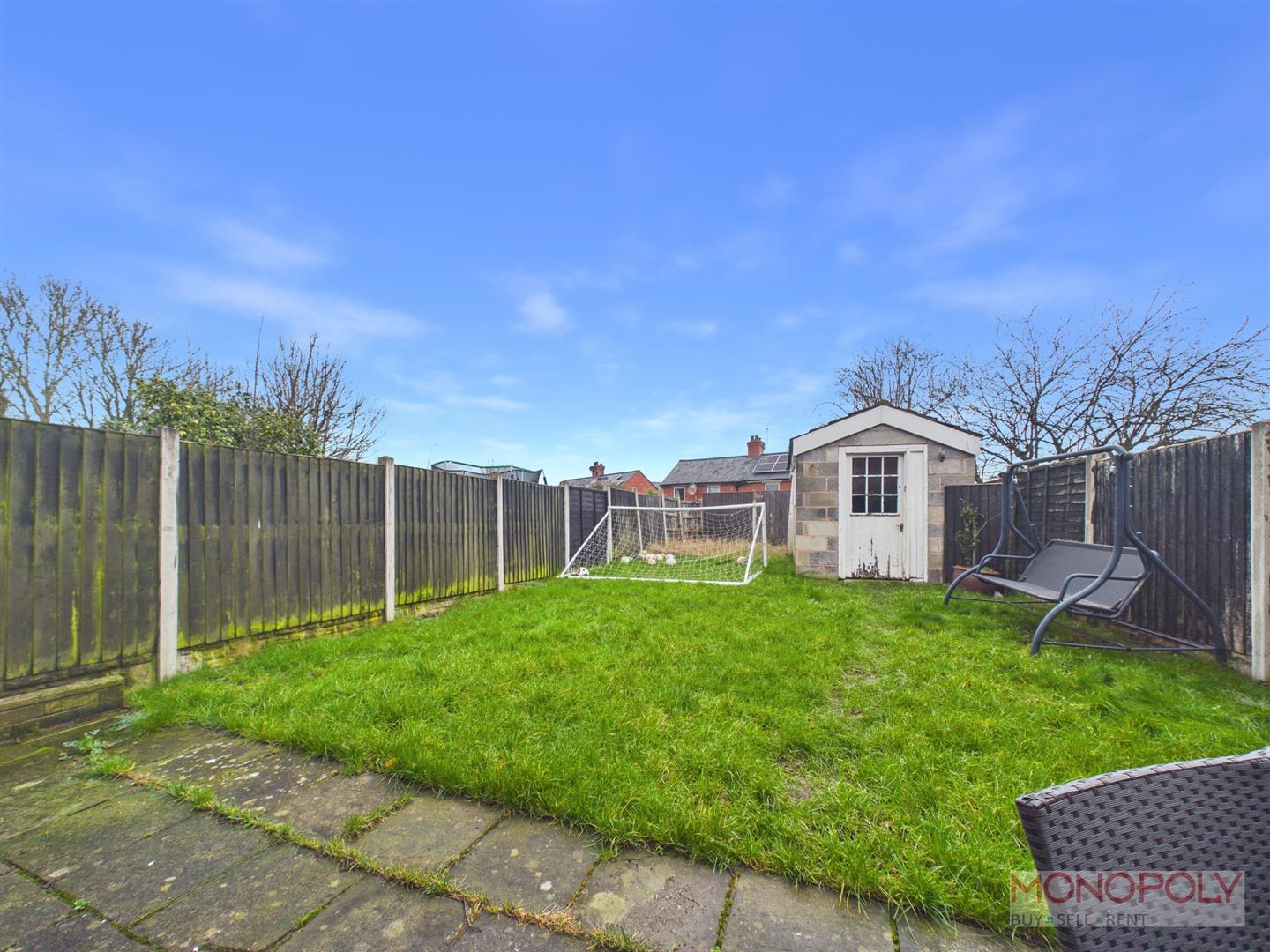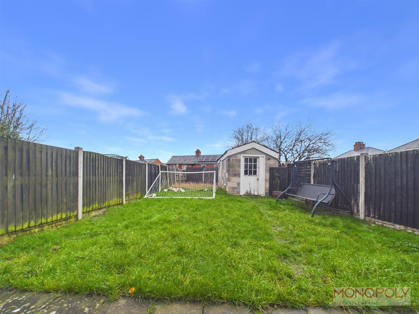 To the rear is a good size garden with a paved patio leading on to a predominantly lawned garden with access to an outside store.