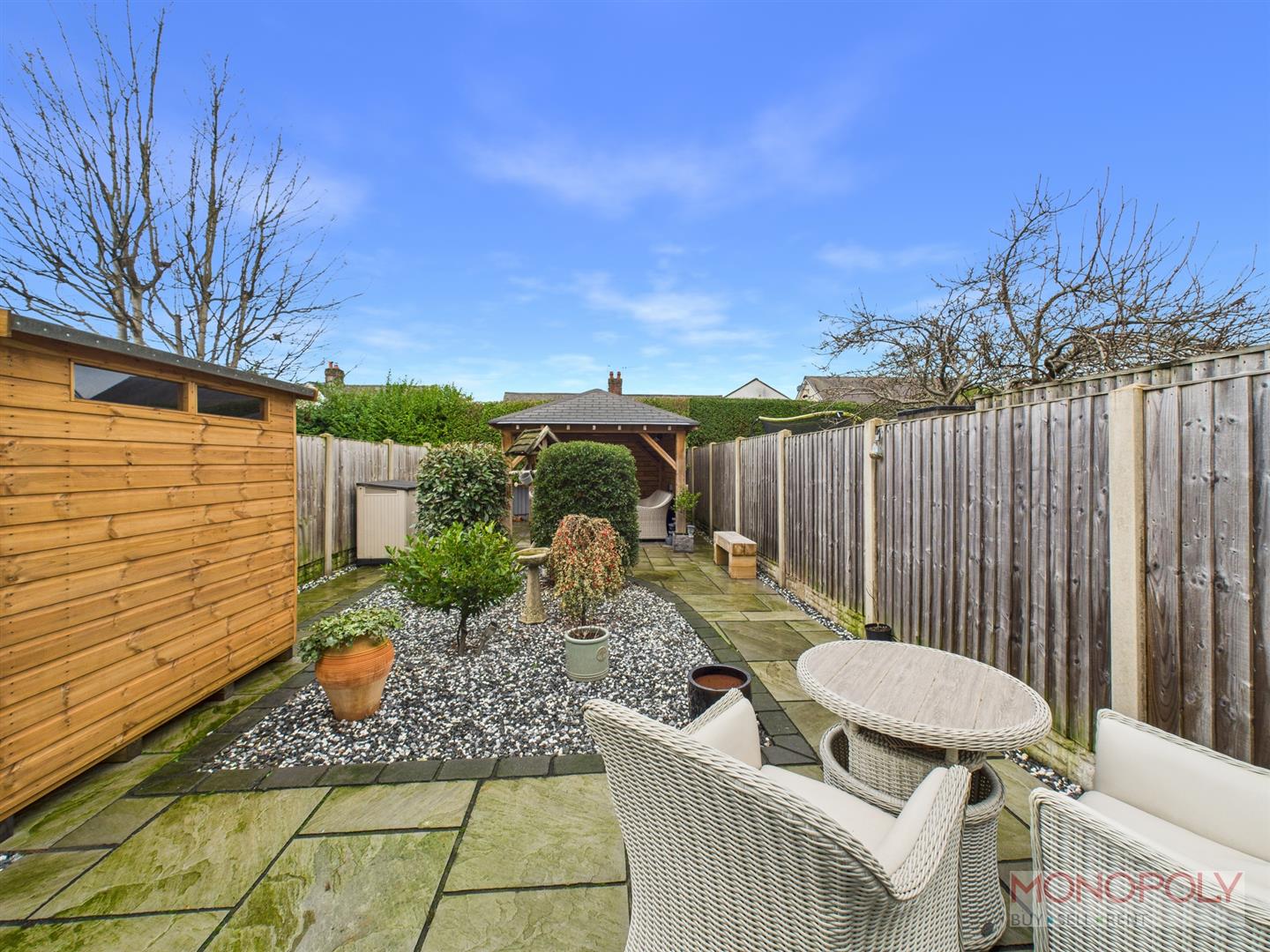 Off road parking to front laid with golden gravel, path to front door, gate to shared rear access passage. Door to store room housing the gas boiler, bin storage area, gate to rear garden. A landscaped low maintenance rear garden enclosed with timber fencing. Stone pacing, gravel area with planted shrubs, covered timber pergola perfect for alfresco entertaining or for relaxing. Outdoor power and water.
