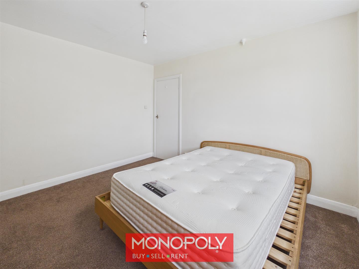 A double bedroom with carpeted flooring, radiator and a double-glazed window overlooking the front of the property.