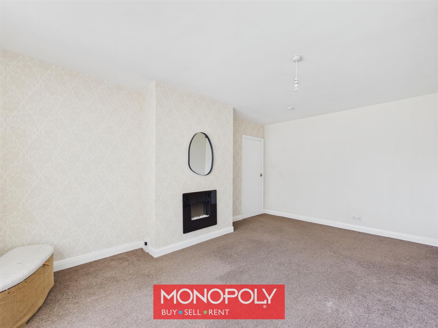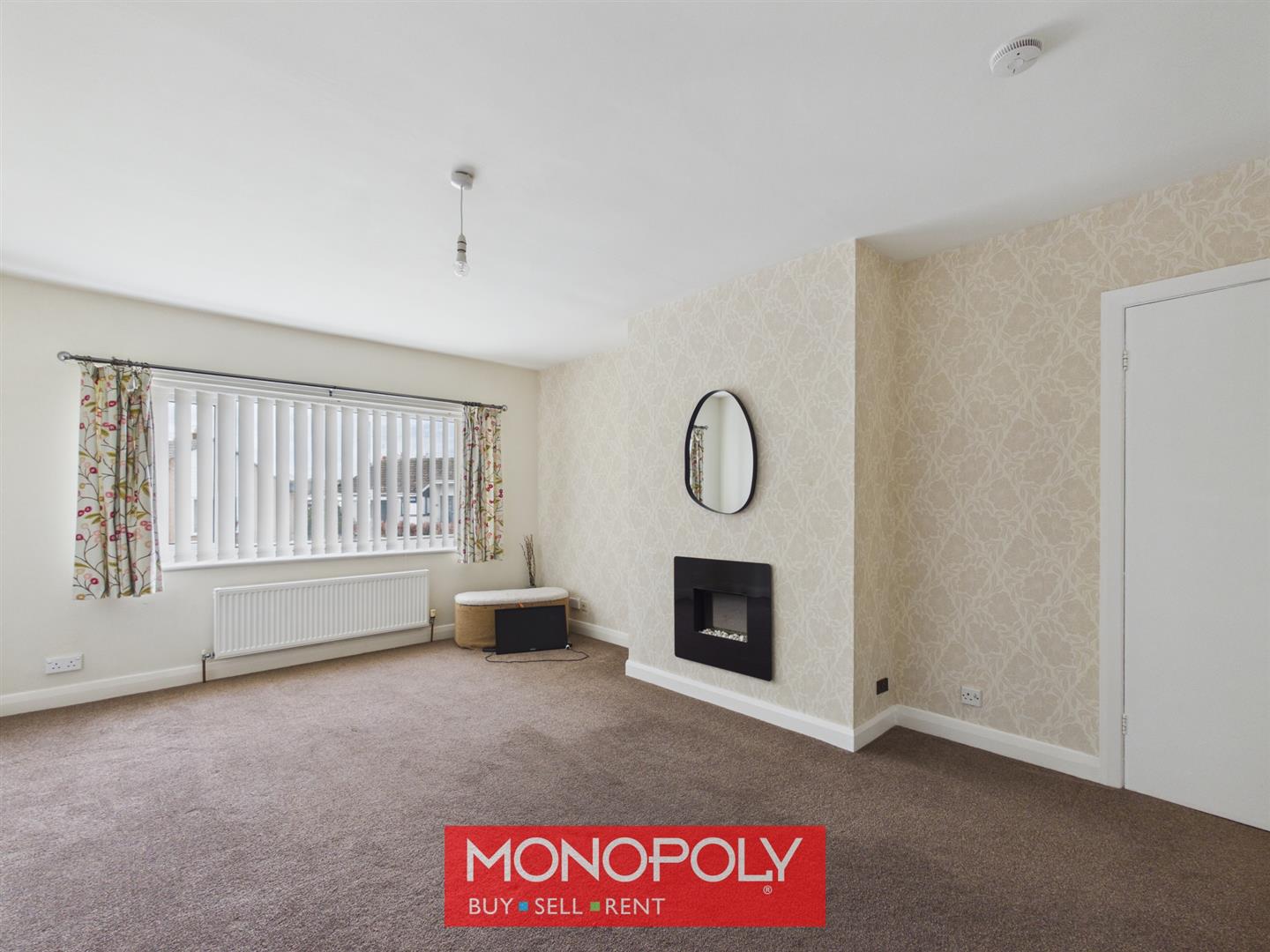 A good-sized lounge with a central chimney breast housing a modern wall-mounted electric fire with a large uPVC double-glazed window overlooking the front of the property with carpeted flooring and two radiator.