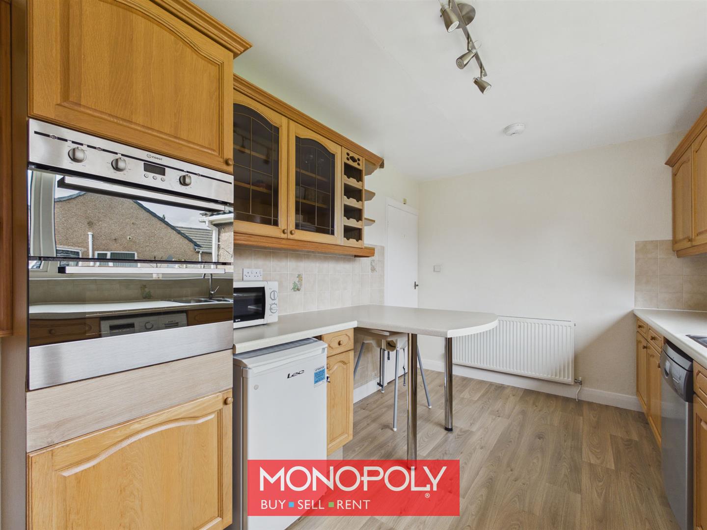 Fitted with a range of timber fronted units with laminate worktops having an eye-level electric oven and grill, white ceramic hob and extractor fan above, stainless steel sink with mixer tap, tiled splashbacks and spaces for white goods, with breakfast bar, radiator, wood effect vinyl flooring, a double glazed window overlooks the rear of the property and a door leads you to the rear hall.