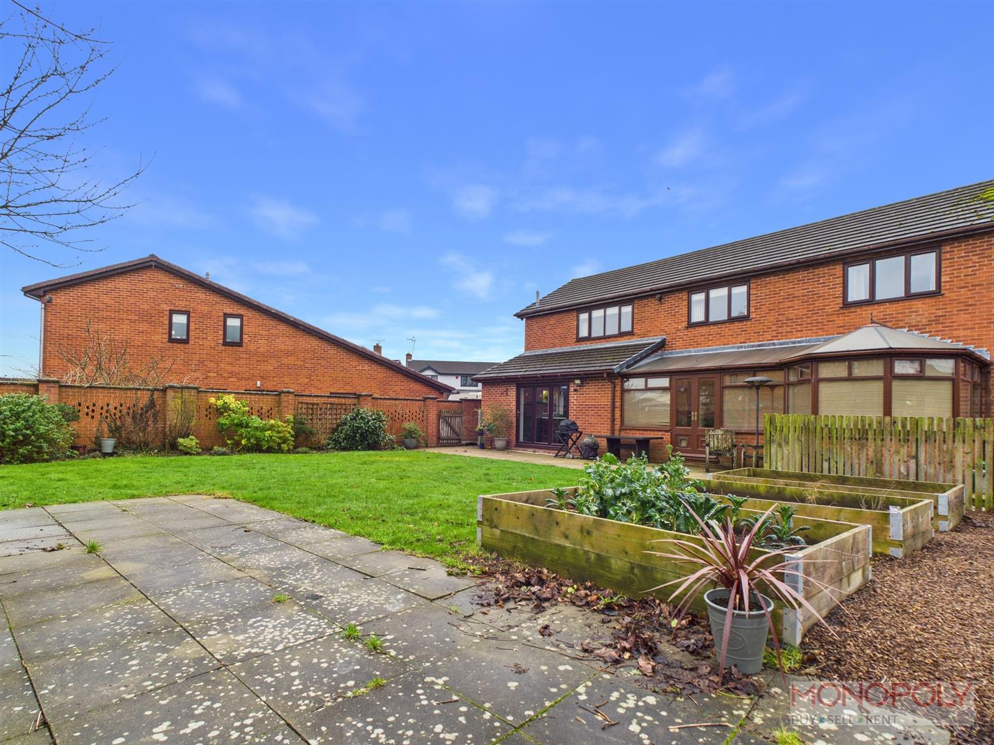 The property is situated upon a large corner plot with large open plan lawn and shrubs to the front. There is a path to the side of the property leading to the rear garden which is walled to all sides providing a high level of privacy and has double gates leading to a hard standing for additional parking. The garden itself has a large lawned area with flower borders to the edges, there are some raised beds for growing vegetables etc. There is a large sectioned off area to the side of the house used as a utility area with fenced pet run.