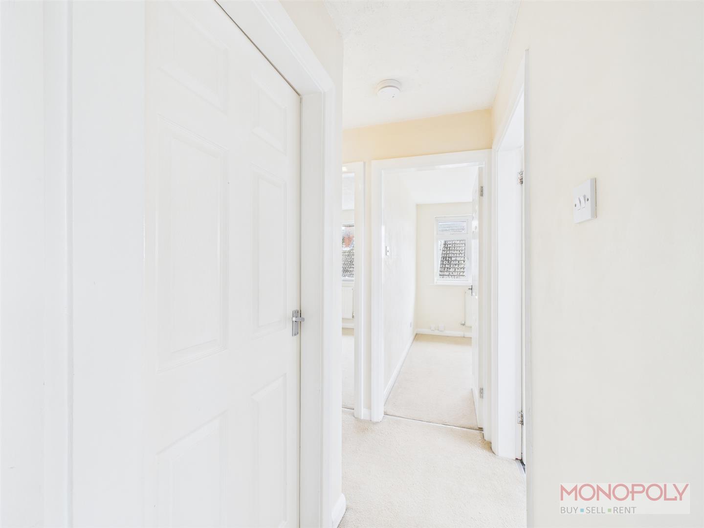 Doors off to bedrooms and living areas, access to loft, storage cupboard with shelving and radiator, carpet flooring and ceiling light point.