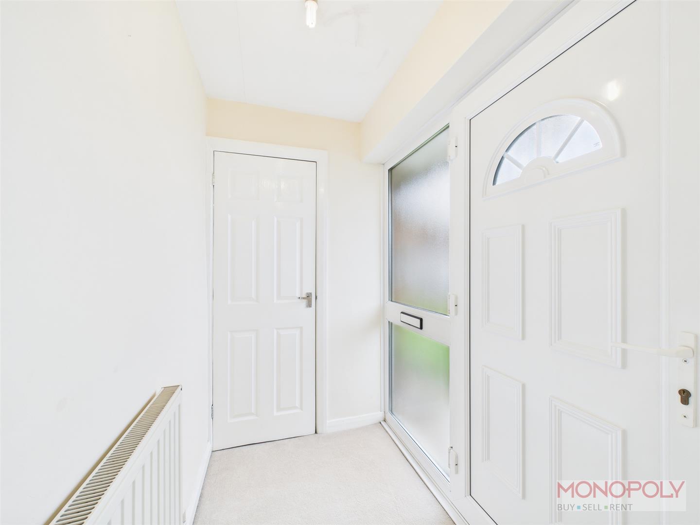 UPVC double glazed door and frosted side panel leads into entrance porch with storage cupboard housing meters. Finished with carpet flooring, panelled radiator and ceiling light point.