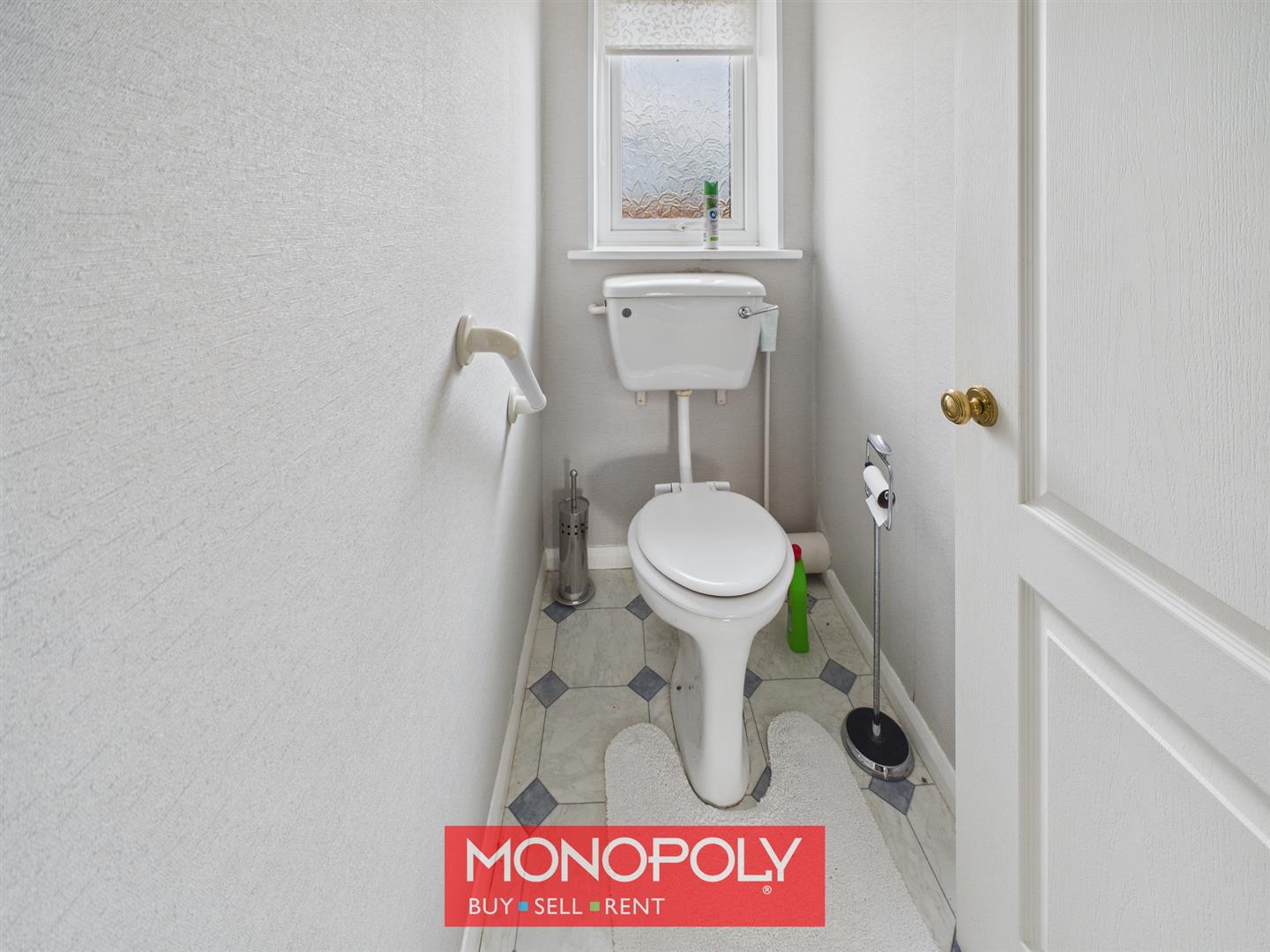 Located off the landing with a low-flush WC, vinyl flooring and a uPVC privacy-glazed window.