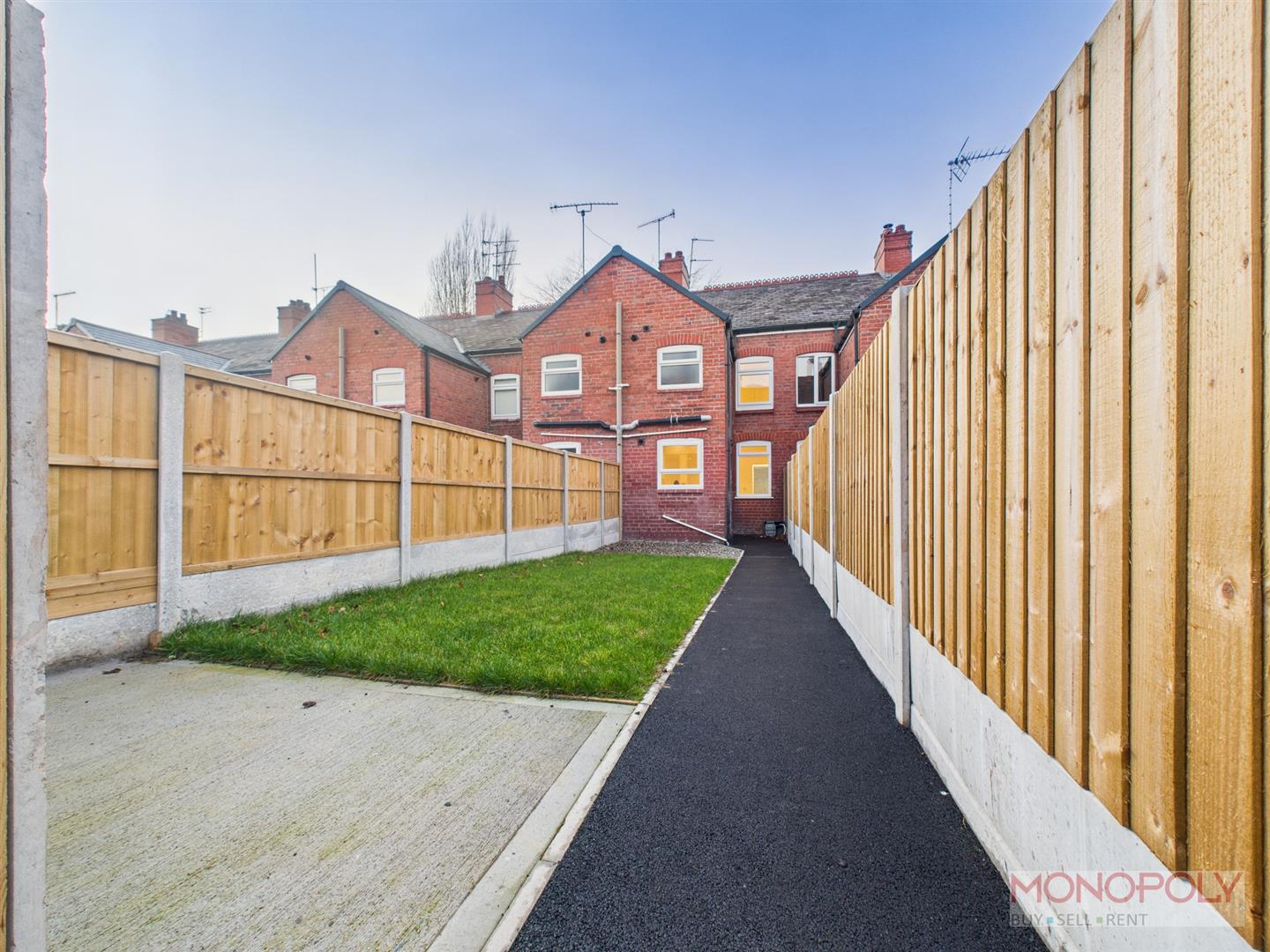 To the front there is ample on-street parking. The rear garden area has been thoughtfully landscaped with the pathways being tarmacked, a decorative stone area, lawned garden and fence panels to the boundary offering privacy and security. There is a shared tarmacked pathway to the rear where refuse can be taken out.