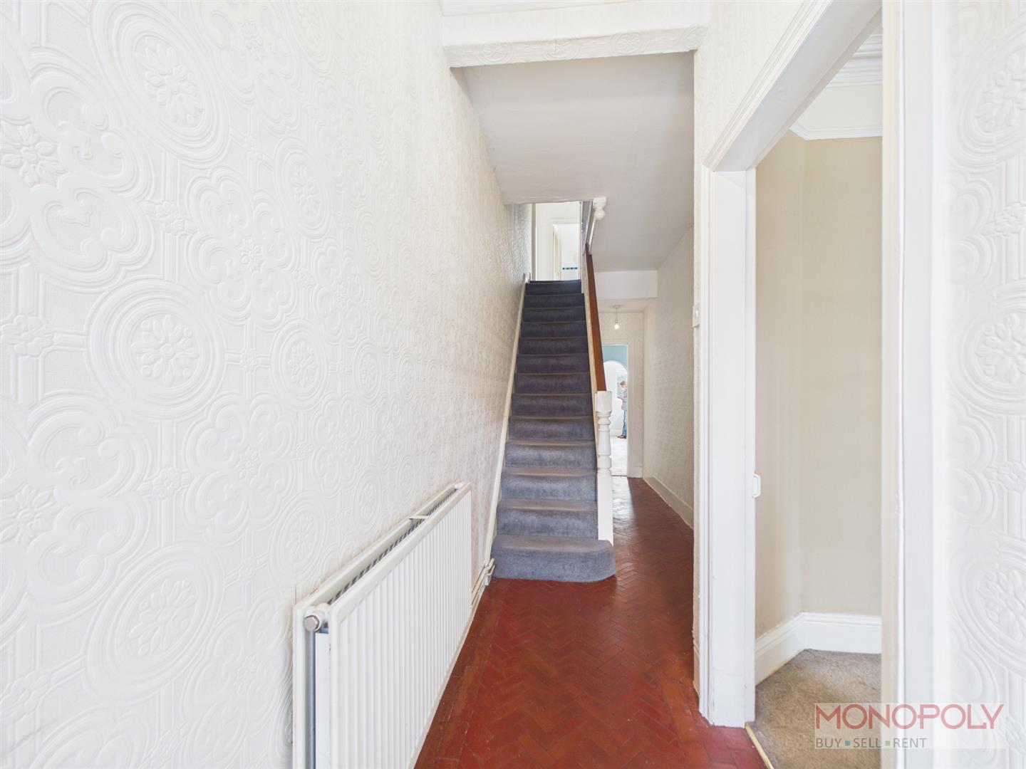 With attractive quarry tiled flooring, stairs off to the first floor.