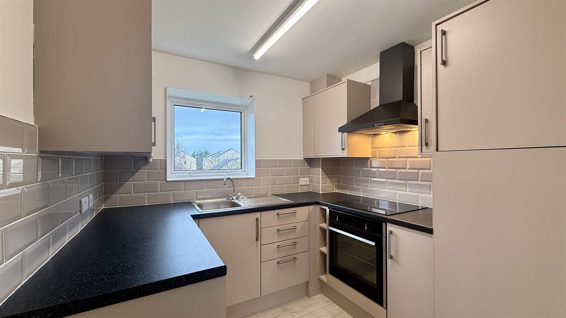 A well equipped contemporary kitchen with a range of wall and base units, built in oven and hob with extractor over. Space and plumbing for a washing machine and space in pantry cupboard for a fridge freezer.